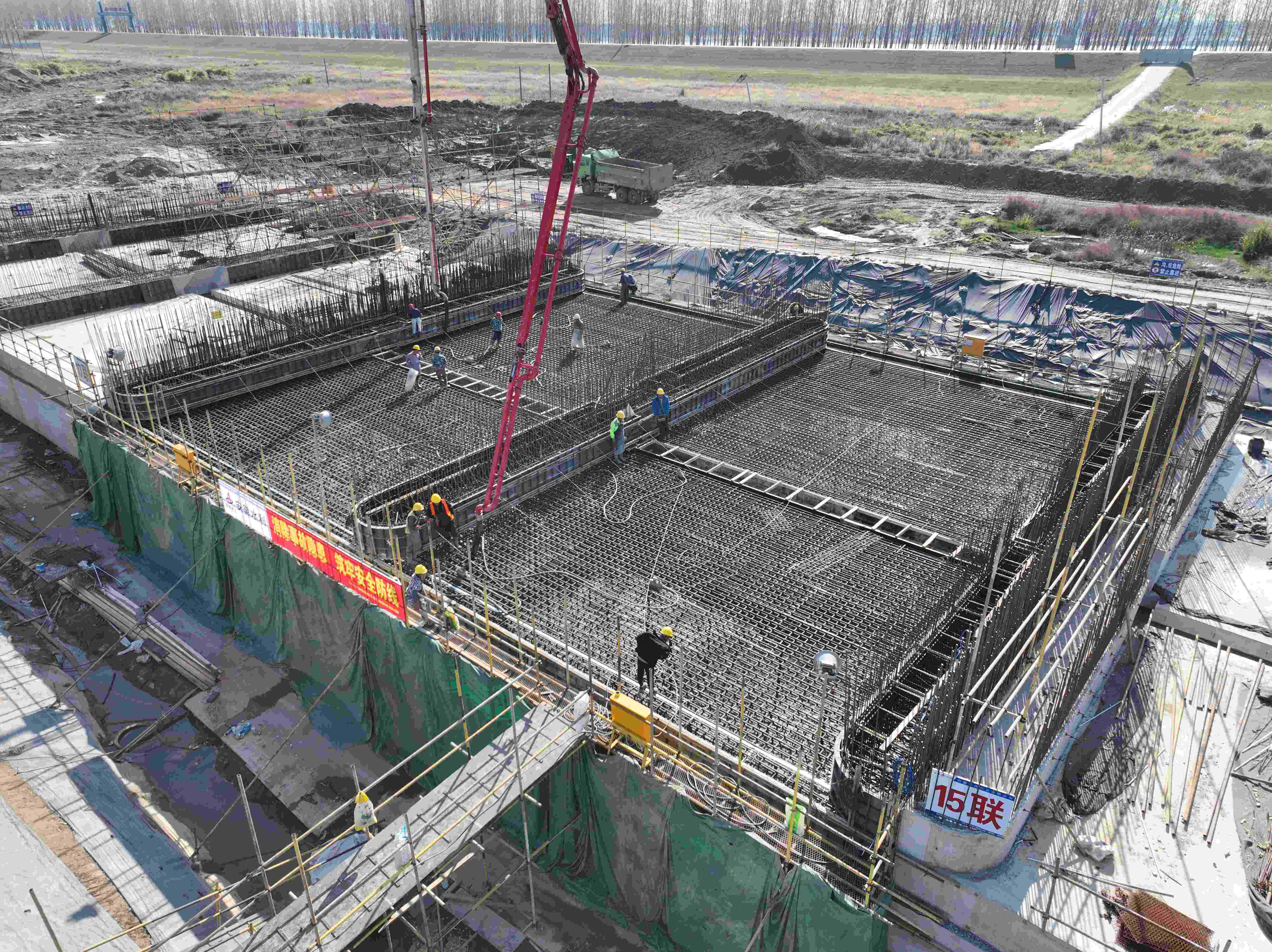 第2聯(lián)和第16聯(lián)閘底板的順利澆筑,標志著程營進洪閘閘底板施工已完成80%,預計年前完成全部閘室底板澆筑。另外,經(jīng)過項目團隊晝夜奮戰(zhàn),全長514.8m的下游防淘墻現(xiàn)已完成220m(共計2600方混凝土),計劃12月15日全部澆筑完成;程營進洪閘左右岸上下游翼墻、深水孔、左右岸岸墻及部分下游引水孔計劃在年前完成。