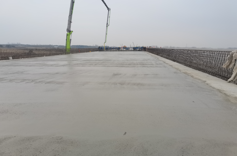 該首件工程為團肥路分離立交橋K65+031.35左幅111-114跨(第21聯)橋面現澆水泥混凝土鋪裝層,凈寬15.5m,厚度10cm。