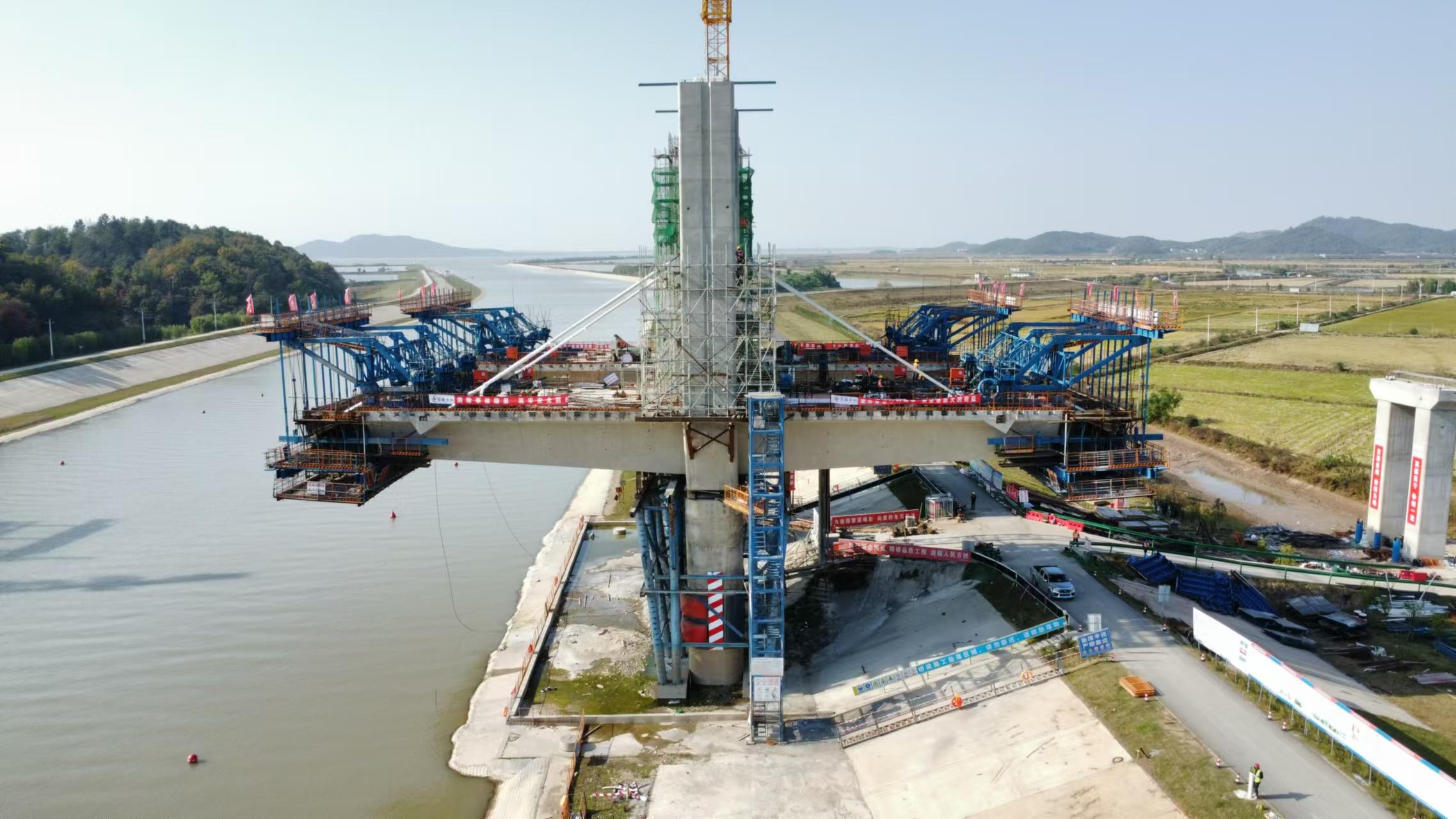 孫瑞曉告訴記者,長(zhǎng)河特大橋?qū)儆谔焯旄咚俟窡o為至安慶段10標(biāo)段施工范圍,該標(biāo)段起點(diǎn)位于樅陽縣官埠橋鎮(zhèn)繼光村,終點(diǎn)位于安慶市宜秀區(qū)楊橋鎮(zhèn),全長(zhǎng)8.9公里,路基長(zhǎng)度6.4公里,橋梁共有6座,長(zhǎng)度2.4公里,包括5座大橋,1座特大橋。當(dāng)前路基工程已基本結(jié)束,長(zhǎng)河特大橋正在進(jìn)行懸臂澆筑和掛梁施工,預(yù)計(jì)明年8月進(jìn)行合龍。