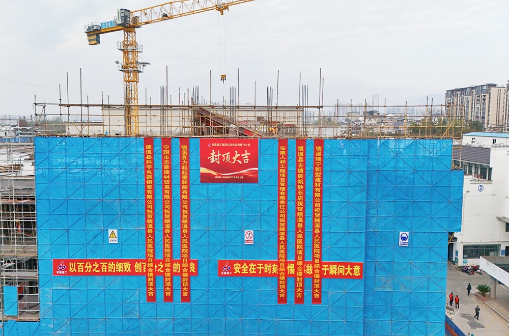 萬丈高樓平地起,方寸之間鑒匠心。項目自開工建設以來,狠抓安全文明施工,嚴格把控建設質量,持續加強標準化管理,全力打造高品質民生醫院。項目精益策劃合理組織,克服夏季高溫及汛期降雨等天氣因素影響,確保各工序有序銜接,歷經265天完成綜合樓主體結構封頂,較計劃工期提前10天,以品質與工期的雙重堅守兌現承諾,以一磚一瓦的精益求精呈現匠心與初心。