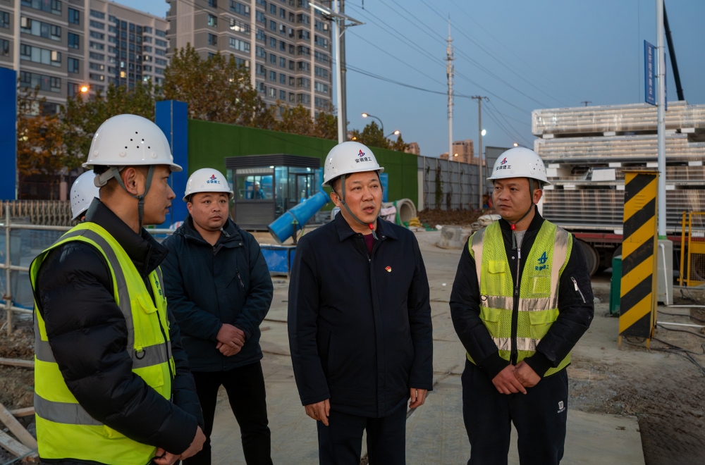 何洪春深入施工現場,詳細了解項目施工進度、質量管控、安全文明施工等方面工作開展情況。就推進項目高標準、高質量、高效率建設,何洪春強調,一要強化統籌協調,優化資源配置。目前,項目已步入關鍵攻堅期,面對資源需求量大的挑戰,項目務必做到科學謀劃、多管齊下,迅速精準調配勞動力、材料設備、資金等資源,為施工按下“加速鍵”,全力跑出項目建設“加速度”。二要嚴守安全底線,壓實安全責任。施工現場要進一步完善安全防護設施,安全巡查小組要履職盡責、全程“緊盯”,高處作業必須佩戴好安全帶、安全帽,大型機械設備要嚴格規范流程作業,溝槽開挖要按方案施工并及時設置安全警示牌、防護欄,全方位消除現場安全隱患,同時做好冬季施工安全保護工作。三要搶抓施工進度,確保關鍵節點優質履約。冬季施工挑戰重重,項目團隊要科學統籌,把進度計劃精確至小時,緊抓晴好天氣“窗口期”,搶工期、保進度,確保關鍵節點按時移交。四要狠抓質量管理,全力打造精品工程。項目要嚴守質量關卡,全力滿足工藝移交需求,重點把控室外總體等關鍵工序,精益求精,打造經得起檢驗的標桿工程。五要踐行綠色文明施工,樹立企業形象。施工現場要時刻保持整潔,施工材料堆放要整齊規范,建筑垃圾要隨產隨清,做到文明綠色施工,樹立企業良好形象。六要做實做細后勤保障工作,凝聚團隊力量。項目團隊要合理安排輪休,讓一線人員勞逸結合;同時,要不斷提升食堂餐飲品質,消除大家的后顧之憂,為項目平穩、高效推進提供有力支持。(康金標、楊光/圖)
