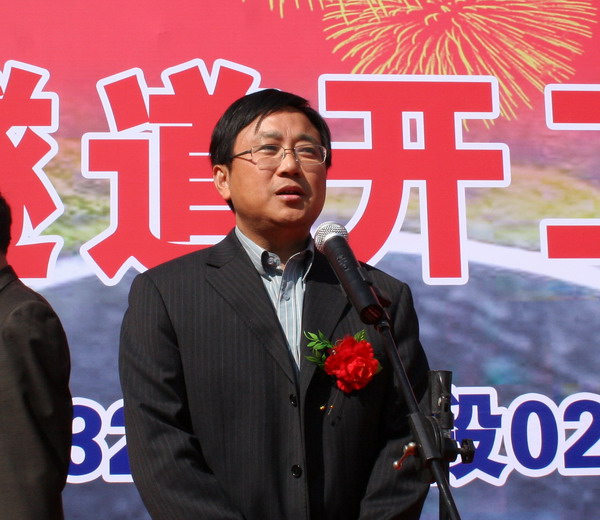 童宗勝董事長宣布隧道開工。吳銳智書記為隧道開工剪彩。