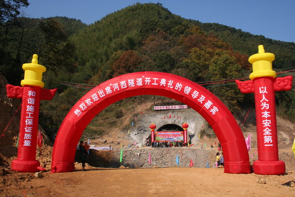 11月5日,省路橋集團董事長、總經理童宗勝,黨委書記、副董事長吳銳智應邀出席了S322桃甘段(桃花潭——甘棠)項目河西隧道開工典禮。