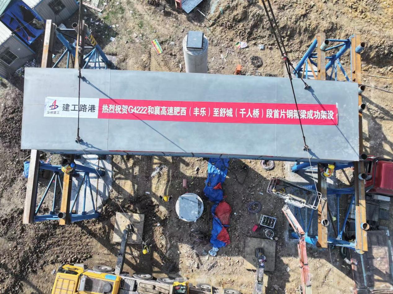 12月20日,G4222和襄高速項目首片鋼箱梁成功吊裝,為后續鋼箱梁吊裝施工奠定基礎。