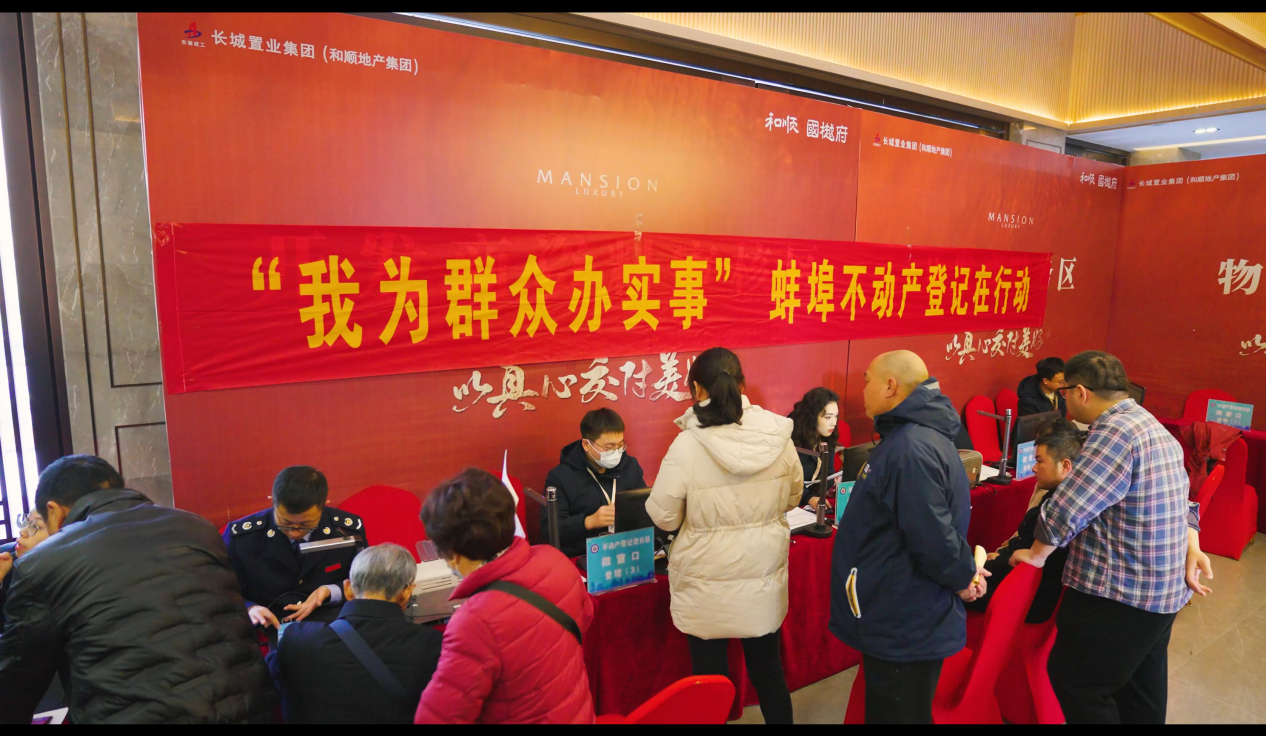 交付大廳內,資料審核、物業簽約、財務辦理、鑰匙領取、禮品發放等各個環節都井然有序。項目還邀請蚌埠市不動產交易中心工作人員現場駐點辦公,為業主辦實事,現場交房即辦證、取證,獲得了業主們的一致好評。