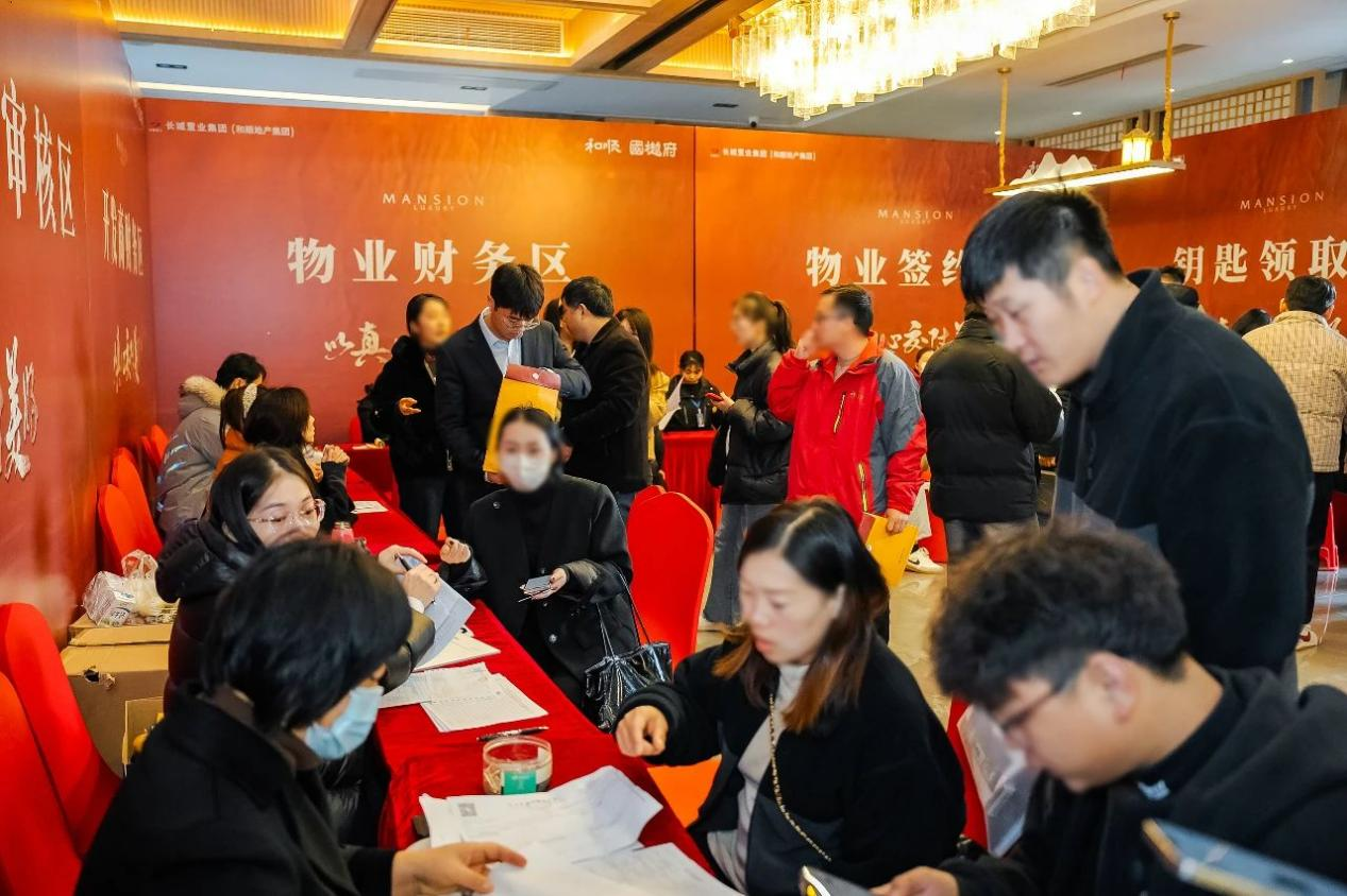 交付當天,南陵項目為業主準備了盛大的交付儀式,現場喜意盎然,交付流程井然有序,南陵項目全體員工與新時代物業員工全程一對一陪同業主驗房,業主們對紫闕院工程品質予以認可,實現交付客戶滿意度百分百。