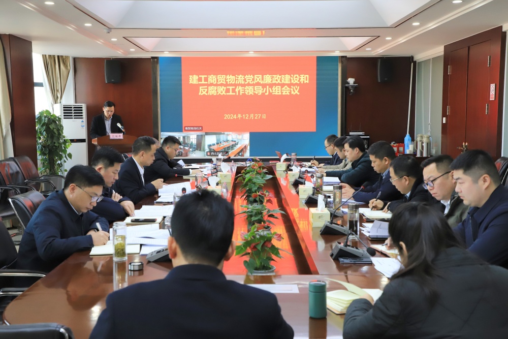12月27日上午,建工商貿物流黨委召開會議,專題研究全面從嚴治黨、黨風廉政建設和反腐敗工作。公司黨委副書記、總經理張俊主持會議并講話,公司領導班子成員參加會議。