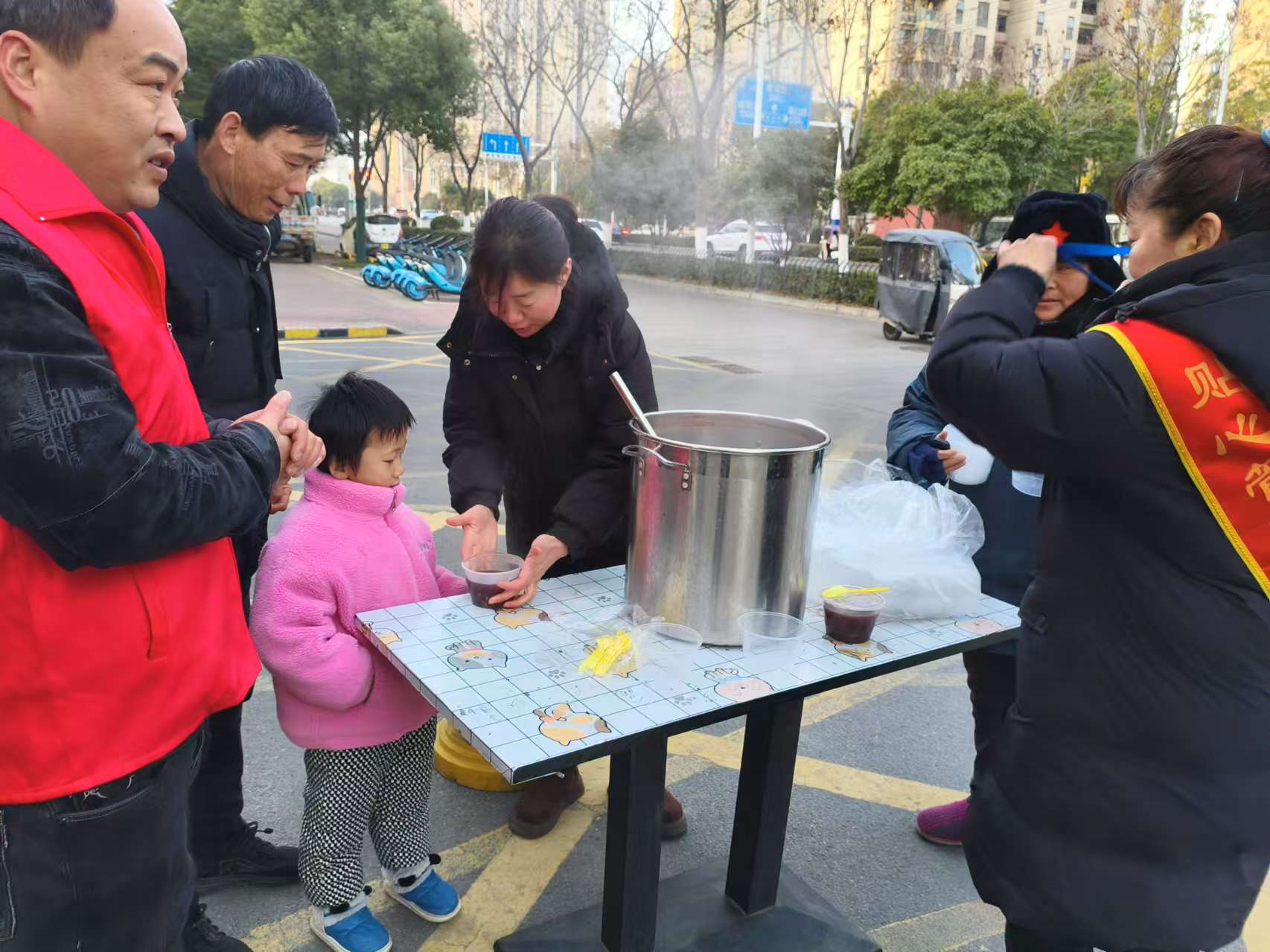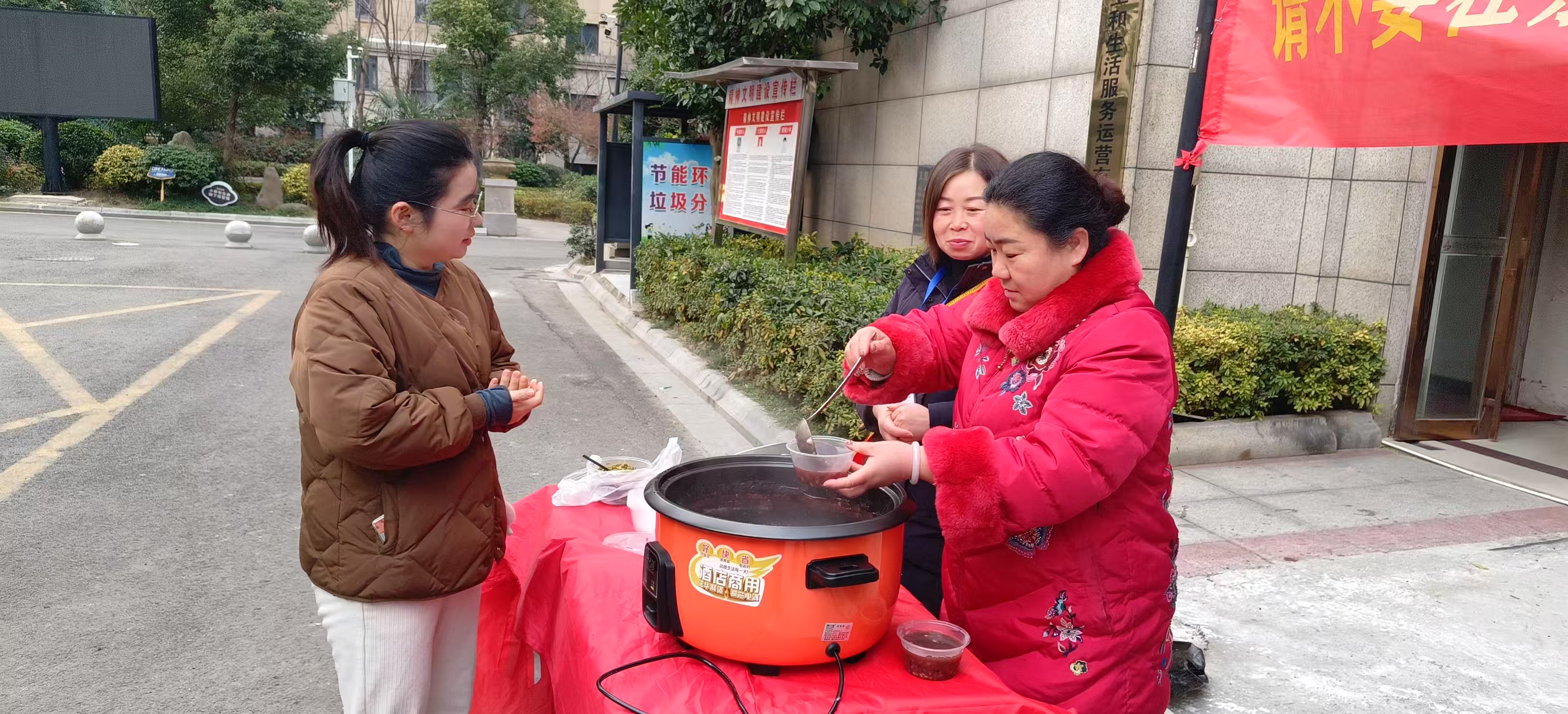 居民們紛紛聞訊趕來,老人們帶著孩子,年輕人陪著長輩,大家歡聲笑語,匯聚成一片歡樂的海洋。物業工作人員熱情地為居民們盛上一碗碗熱氣騰騰的臘八粥,還細心地準備了一次性餐具,方便大家食用。現場暖意融融,鄰里間的問候交談聲此起彼伏,情誼在這一碗粥中升溫。