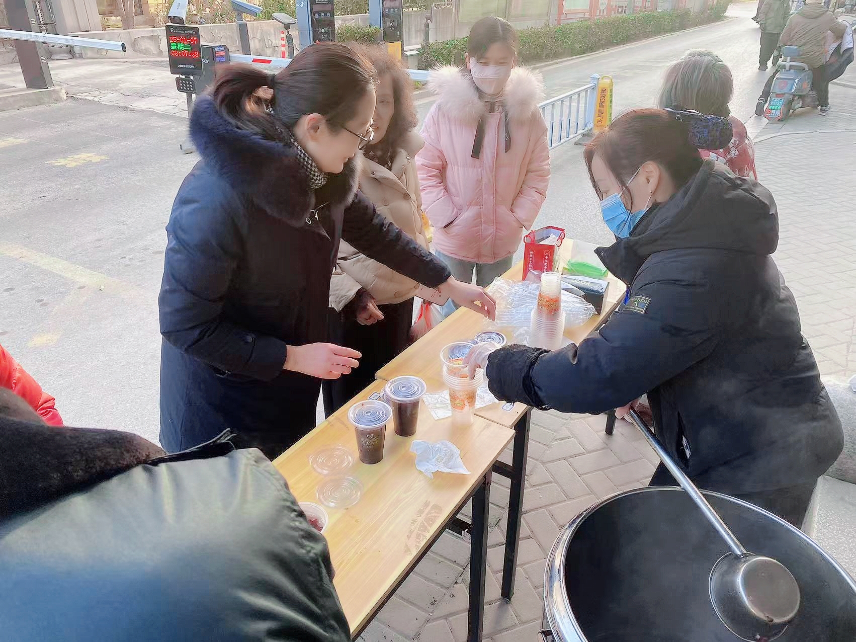 晨光熹微,在不同地方,相同的時間里上演著同樣的劇情,各個項目的物業工作人員化身“節日使者”,早早忙碌開來,為臘八節活動準備著。園區廣場上、小區大門旁,煮好的臘八粥搭配著茶葉蛋已經端上桌來,鍋中熱氣騰騰,散發著臘八粥誘人的香氣。精心熬制的臘八粥,選用了上等的糯米、紅豆、紅棗、桂圓等食材,寓意著吉祥、團圓、幸福與安康,每一口都是滿滿的心意。