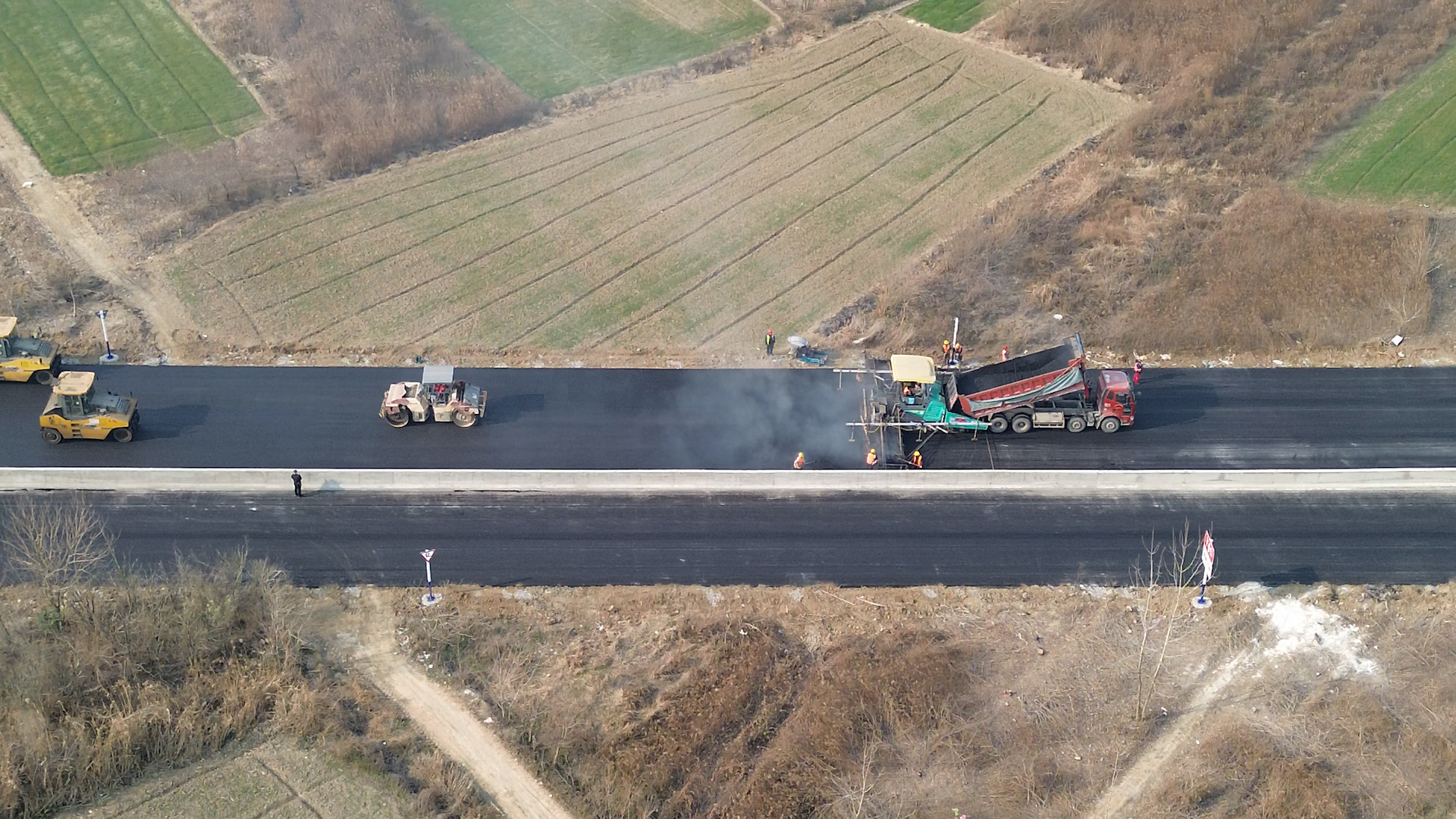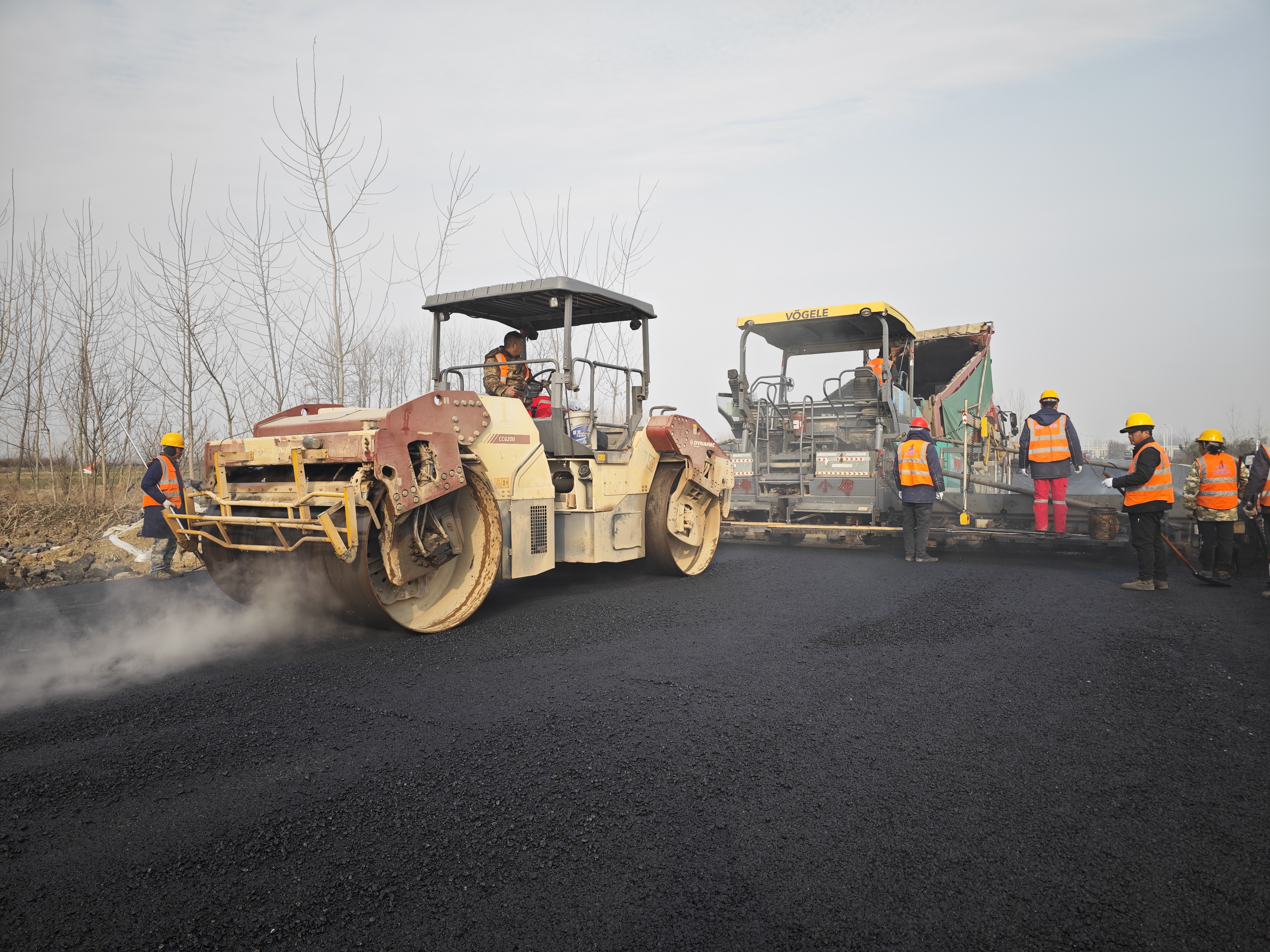 此次鳳陽銜接段300米瀝青攤鋪共投入攤鋪機2臺、鋼輪壓路機3臺 、膠輪壓路機4臺、自卸車12輛以及20余名專業(yè)技術(shù)人員和施工人員同步開展作業(yè),現(xiàn)場繁忙而有序,每一道工序都嚴格按照技術(shù)標準和規(guī)范執(zhí)行,確保工程質(zhì)量達到最優(yōu)。