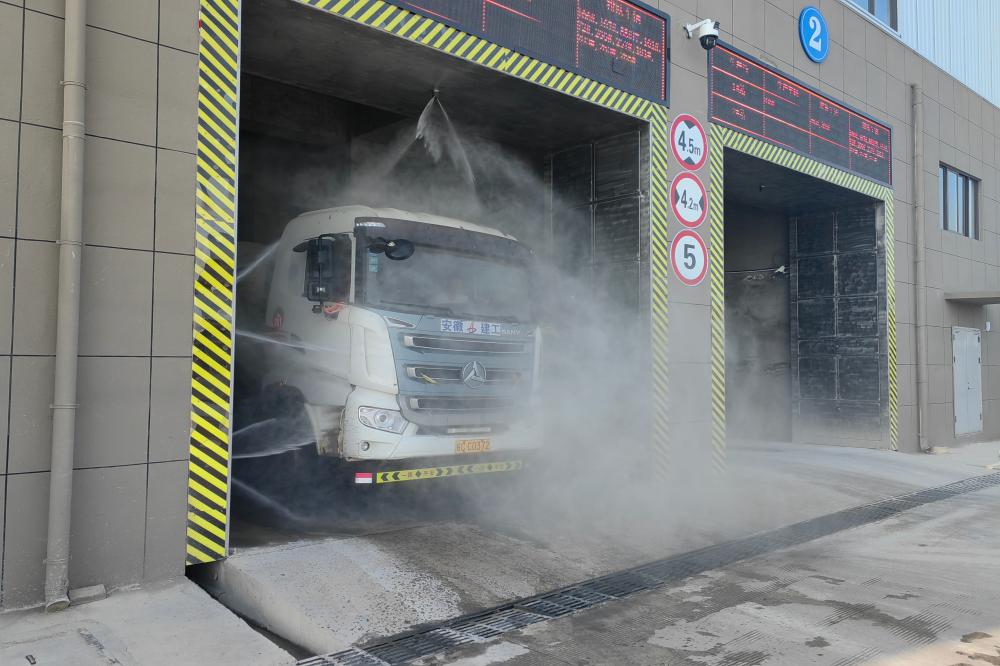 車輛在卸料完成后,進(jìn)入自動(dòng)沖洗平臺(tái),沖洗完成后駛離;原材料倒入倉(cāng)庫(kù)后,除塵設(shè)備會(huì)進(jìn)行自動(dòng)啟動(dòng)噴淋系統(tǒng),確保粉塵不外溢;廠區(qū)內(nèi)全天候?qū)嵤袷阶鳂I(yè),從自動(dòng)化噴淋系統(tǒng),車輛運(yùn)輸沖洗,回流污水和廢漿廢渣處理等方面,實(shí)現(xiàn)了廠站生產(chǎn)混凝土過(guò)程中揚(yáng)塵、廢氣、污水和噪聲的“零排放”的目標(biāo)……不斷推進(jìn)建材生產(chǎn)向著綠色低碳發(fā)展。