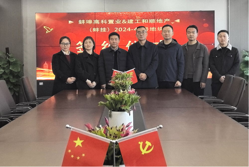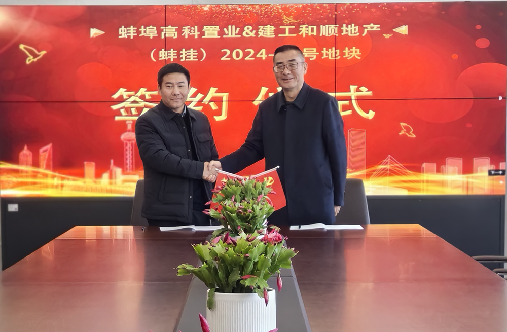 1月20日上午,長城置業所屬建工和順與蚌埠高科置業在蚌埠高投集團會議室就(蚌掛)2024-41號地塊舉行了簽訂儀式。建工和順黨支部書記、總經理聶榮兵,蚌埠高新投資集團副總經理、高科置業法定代表人陳輝出席簽約儀式。