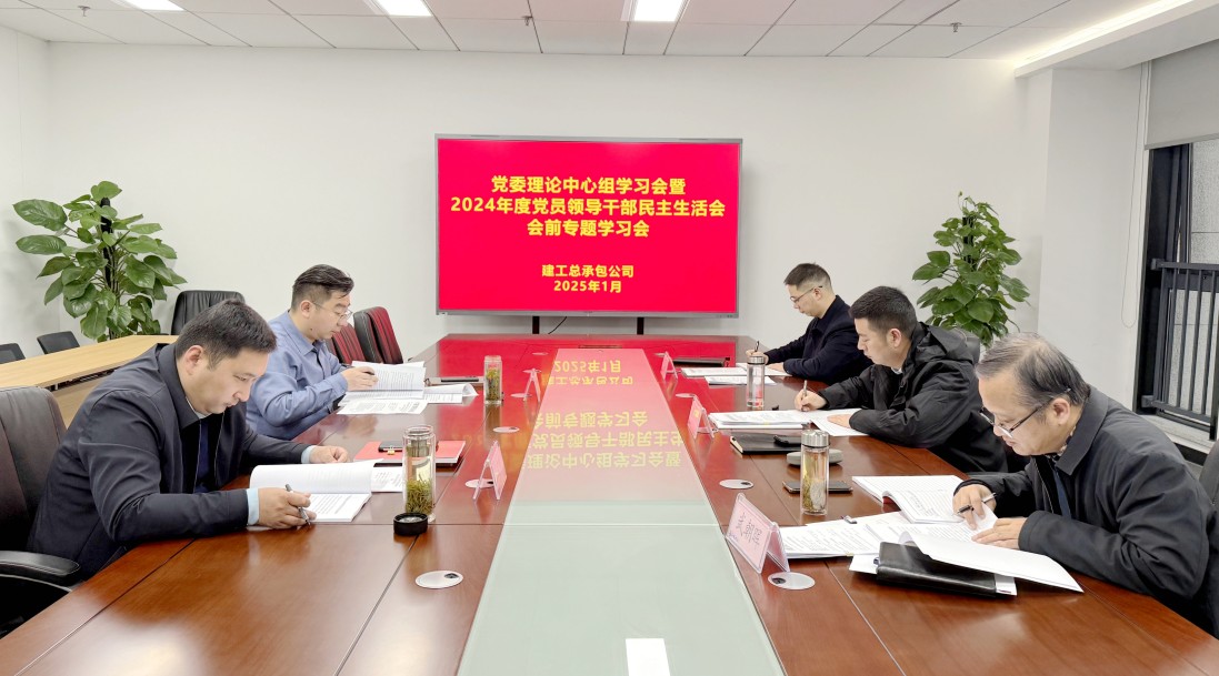 1月23日下午,建工總承包公司黨委理論學習中心組開展民主生活會會前專題學習,黨委書記、總經理傅宏林主持會議,公司領導班子成員參加會議。