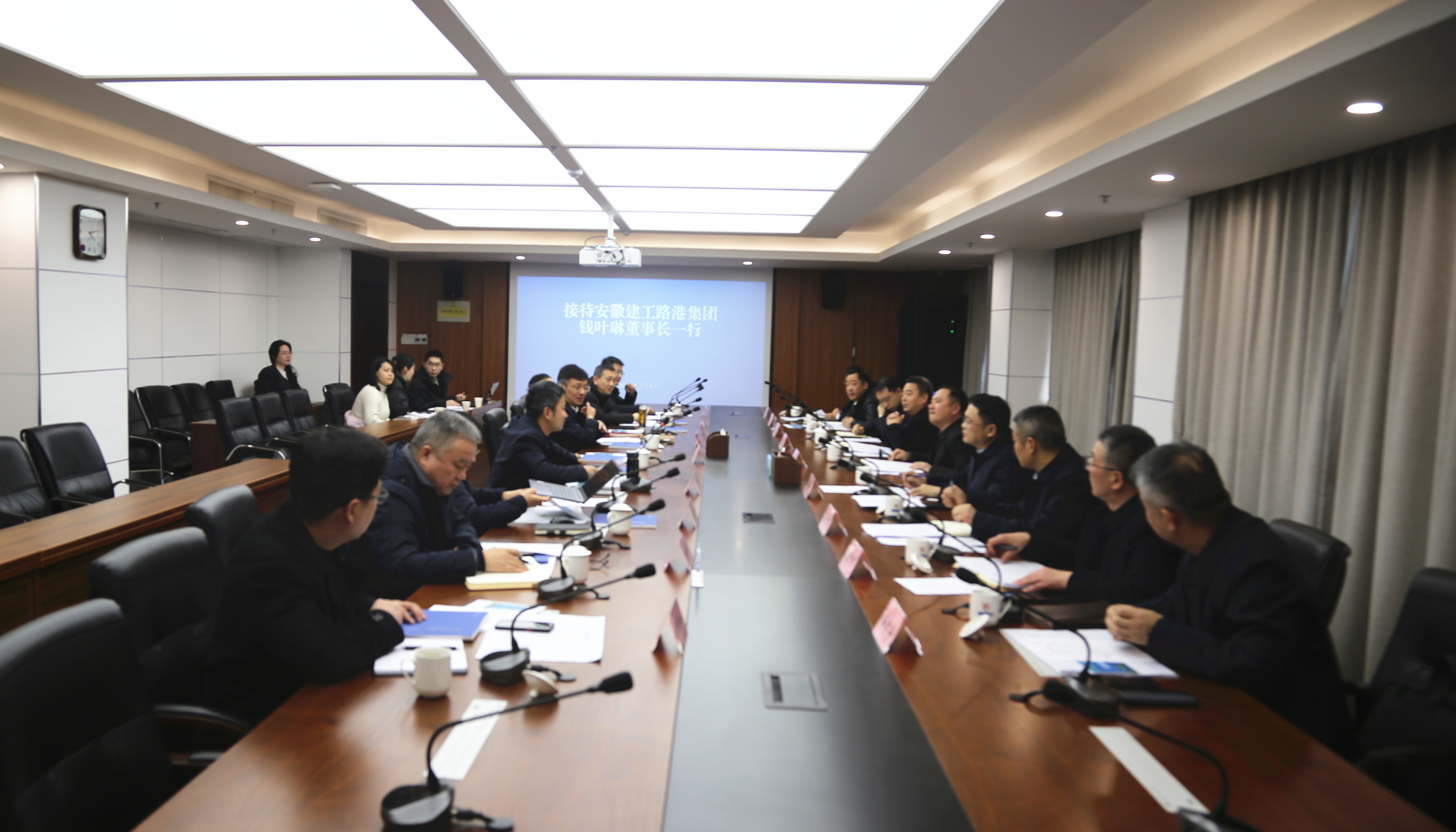 2月6日,建工路港黨委書記、董事長錢葉琳率隊赴蕪湖市經濟技術開發區管委會,與經開區黨工委書記、管委會主任曹小明舉行工作會談。