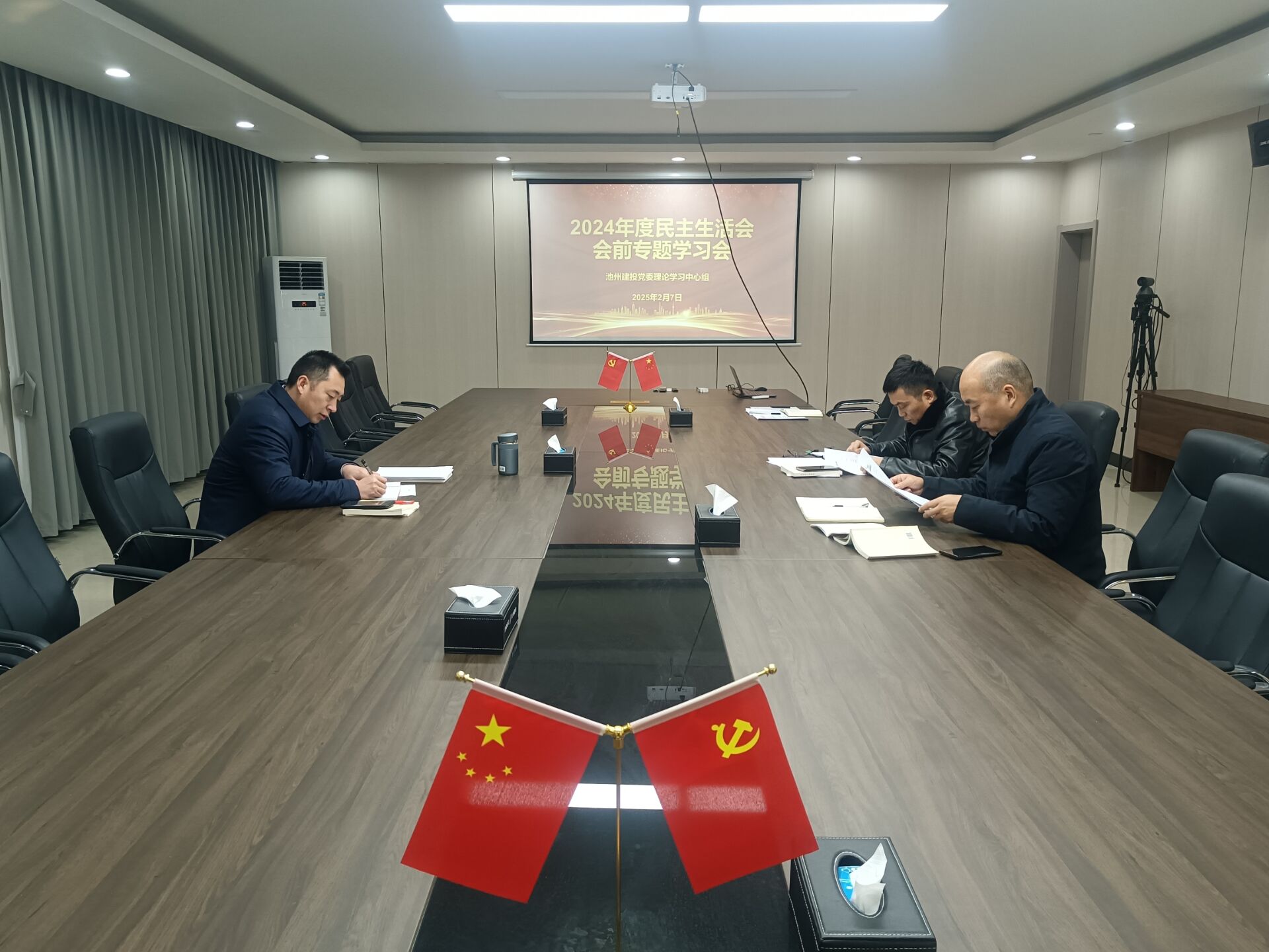2月7日,池州建投黨委理論學習中心組開展民主生活會會前專題學習,黨委書記、董事長、總經理王秋華主持會議,公司領導班子成員參加會議。