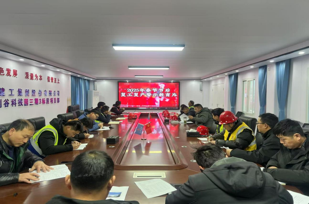 人勤春來早,奮進正當時。2月7日,中安創谷科技園三期3標段項目的建設者們以飽滿的熱情迅速回歸崗位,緊鑼密鼓地投入到緊張有序的項目建設中。一是周密部署,吹響復工“集結號”,項目部第一時間召開復工復產部署會議,明確目標、細化任務、落實責任,為項目順利復工奠定堅實基礎。二是全面排查,筑牢安全“防火墻”,組織專業人員對施工現場的設備設施進行全面檢查、維護,確保設備正常運行,切實筑牢安全生產防線。三是強化保障,按下復工“加速鍵”,積極與各方供應商溝通協調,保障施工材料的及時供應;嚴格落實安全生產責任制,對進場施工人員進行安全培訓,為項目全面復工做好充分準備。