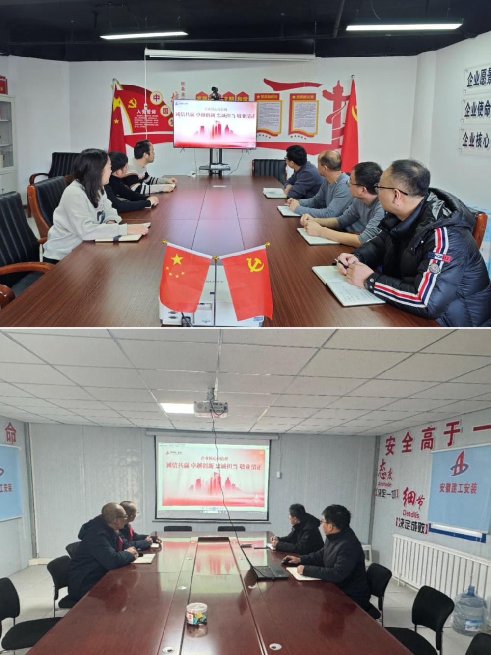 近日,安徽建工集團(tuán)發(fā)布“誠信共贏、卓越創(chuàng)新、忠誠擔(dān)當(dāng)、敬業(yè)清正”的企業(yè)核心價(jià)值觀。為深入學(xué)習(xí)、積極踐行,推動(dòng)集團(tuán)核心價(jià)值觀落實(shí),建工安裝所屬各單位迅速行動(dòng),組織開展了一系列主題鮮明、內(nèi)容豐富、形式多樣的專項(xiàng)宣貫活動(dòng),掀起了學(xué)習(xí)宣貫熱潮。