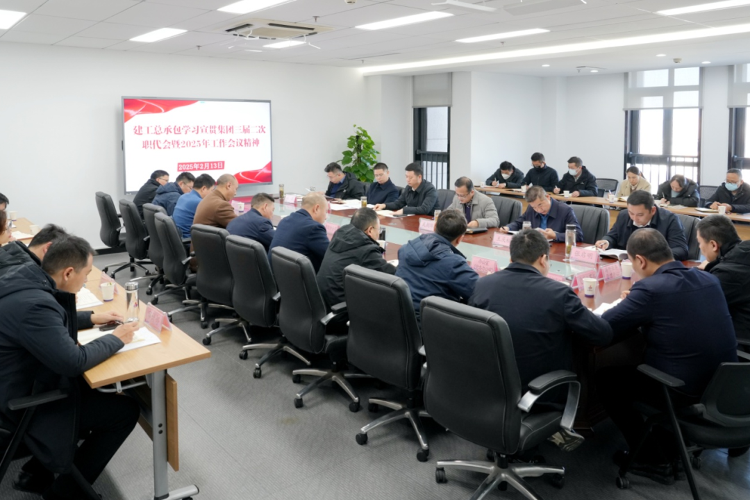 2月13日,公司召開集團(tuán)三屆二次職代會精神宣貫暨2025年經(jīng)濟(jì)指標(biāo)分析會,迅速學(xué)習(xí)宣貫建工控股三屆二次職代會暨2025年工作會議精神,動員廣大干部職工把思想和行動統(tǒng)一到集團(tuán)決策部署上來。公司領(lǐng)導(dǎo)班子成員,所屬各單位、機(jī)關(guān)部門負(fù)責(zé)同志參加會議,與會人員圍繞公司2025年經(jīng)濟(jì)指標(biāo)和重點(diǎn)工作任務(wù)進(jìn)行了研討交流。