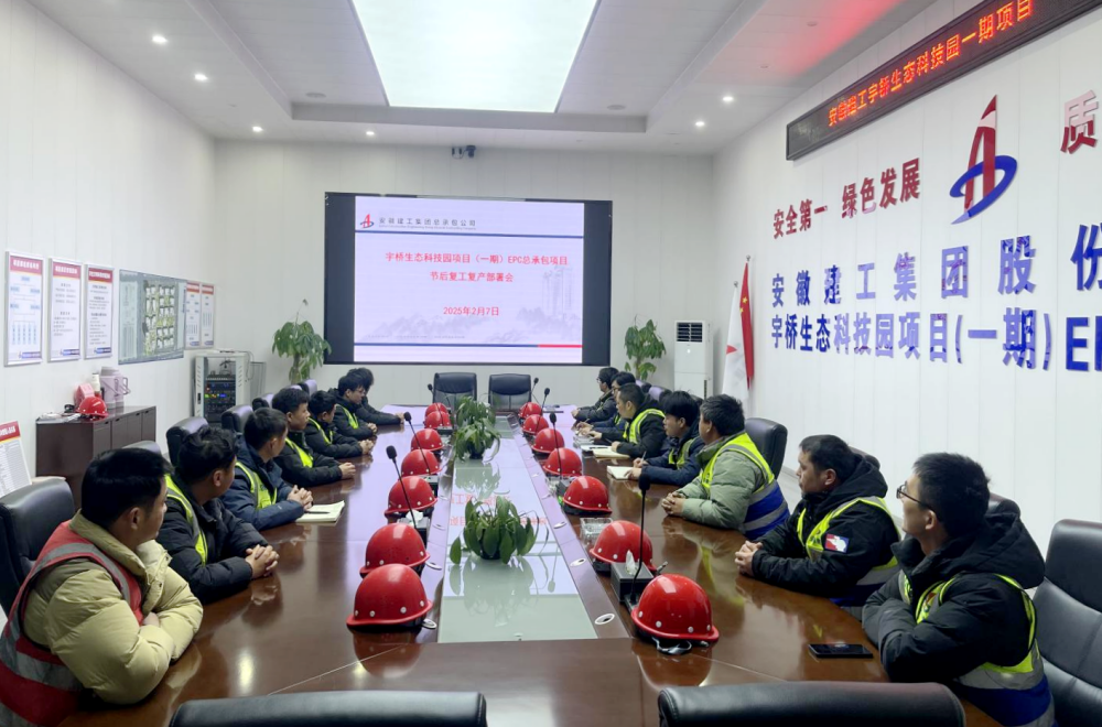 一年之計在于春,項目建設正當時。春節假期剛過,宇橋生態科技園(一期)EPC總承包項目按下返崗“快進鍵”,吹響復工復產“集結號”。 項目將安全生產工作放在首位,第一時間召開復工復產部署會,科學謀劃、周密部署,嚴格落實“五個必須”要求,積極推行“安全生產包保”制度,深入開展“四不兩直”班組專項安全檢查,對項目各要素進行嚴格把控,全面排查整治安全隱患,堅決筑牢安全生產防線,為項目安全高效復工復產保駕護航。全體參建人員統一思想、鼓足干勁,以打造新一代高端科技生態園區為目標,緊盯時間節點,倒排工期、掛圖作戰,全力以赴推進項目建設,確保項目如期高質量交付,為打造高端科技生態園區標桿貢獻力量,為實現全年目標任務開好局、起好步。