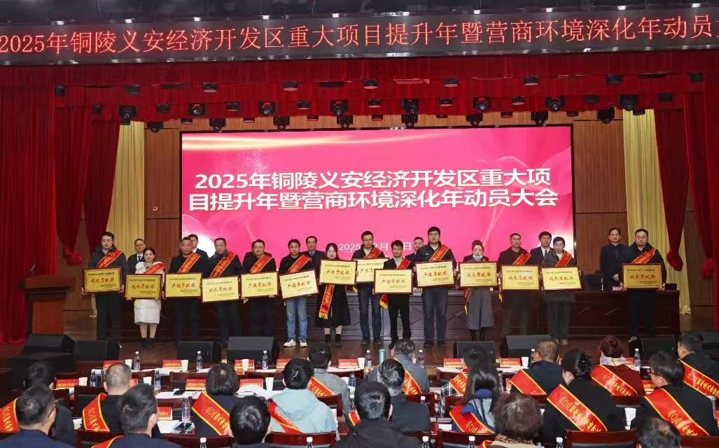 2月19日上午,銅陵義安經開區召開2025年義安經開區重大項目提升年暨營商環境深化年動員大會,重點表彰在義安經開區高質量發展中作出突出貢獻的集體和個人,安徽建工長江建設投資有限公司現場獲頒“2024年度義安經開區高質量發展產值貢獻獎”。
