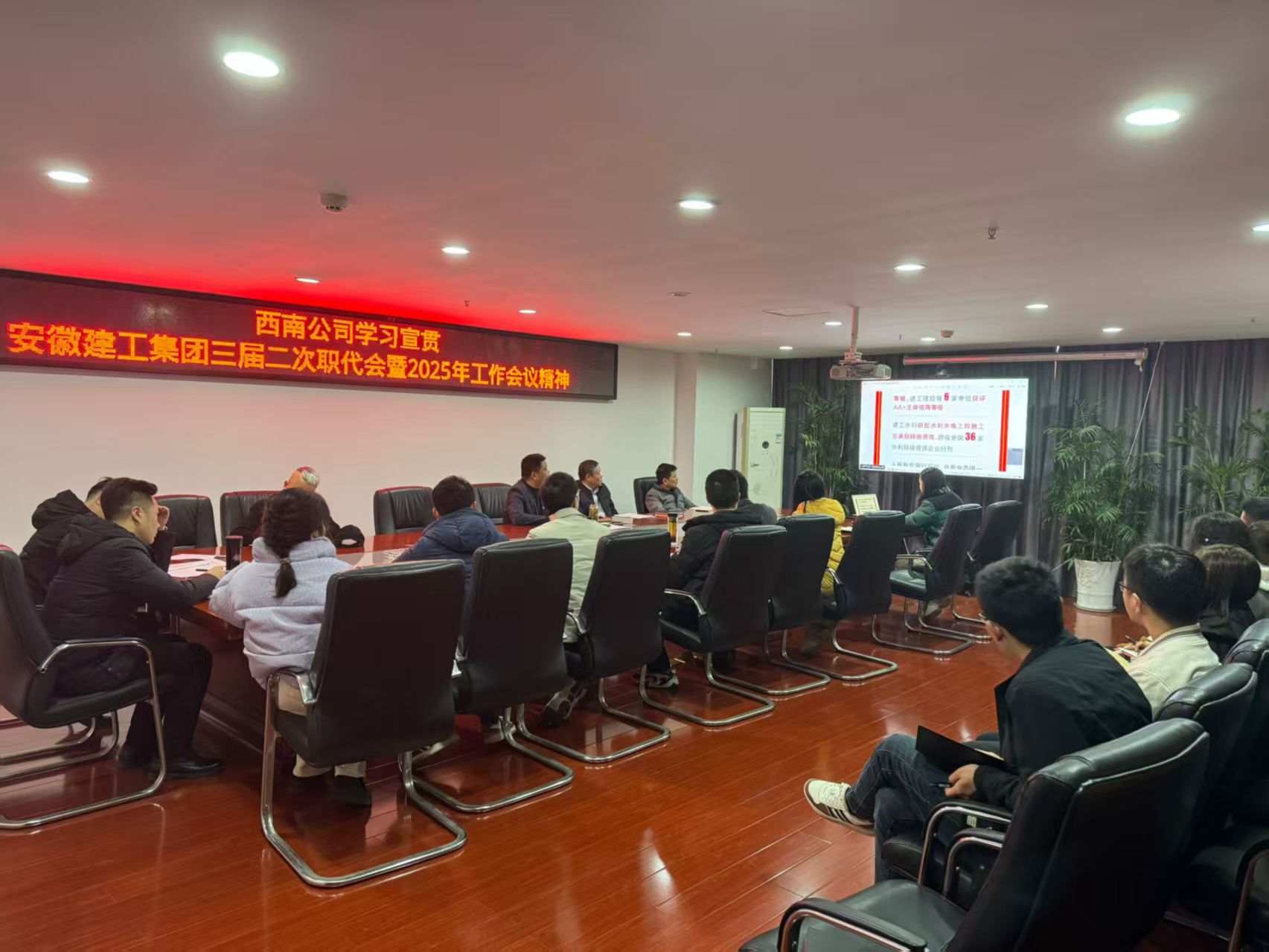 西南公司召開建工控股三屆二次職代會暨2025年工作會議精神學習宣貫會, 深入研習會議內容,透徹領會會議精神,錨定重點任務,切實將思想和行動統一到會議精神要求上來,全面推動會議精神融入工作實踐,以實干推動高質量發展再上新臺階。