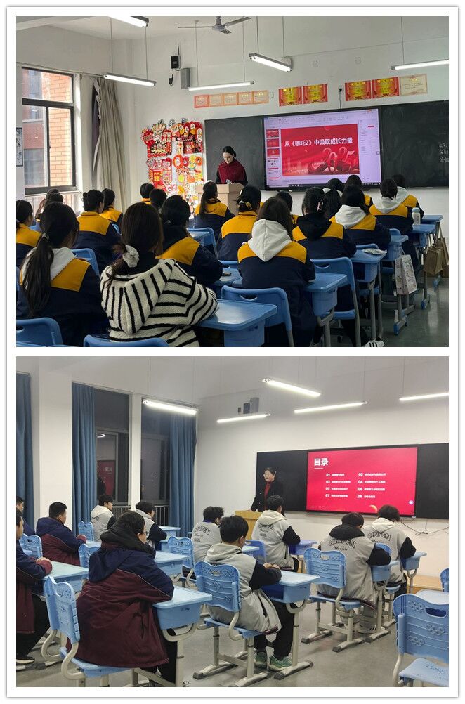 系團總支制作團課課件,以春節檔熱門影片《哪吒之魔童鬧?!窞榍腥朦c,將主人公從叛逆少年到覺醒成長的蛻變歷程,與校園生活精準映射。各班班主任通過分析電影中“自我認知-突破困境-實現蛻變”的三階段故事,啟發團員青年要“打破偏見,追求自我;勇于改變,突破自我;風華正茂,銳意進取”,帶領系部團員青年感悟哪吒“我命由我不由天”的拼搏精神、“敢作敢當,勇于承擔責任”的擔當精神和“心懷正義,勇于斗爭”的正義精神。