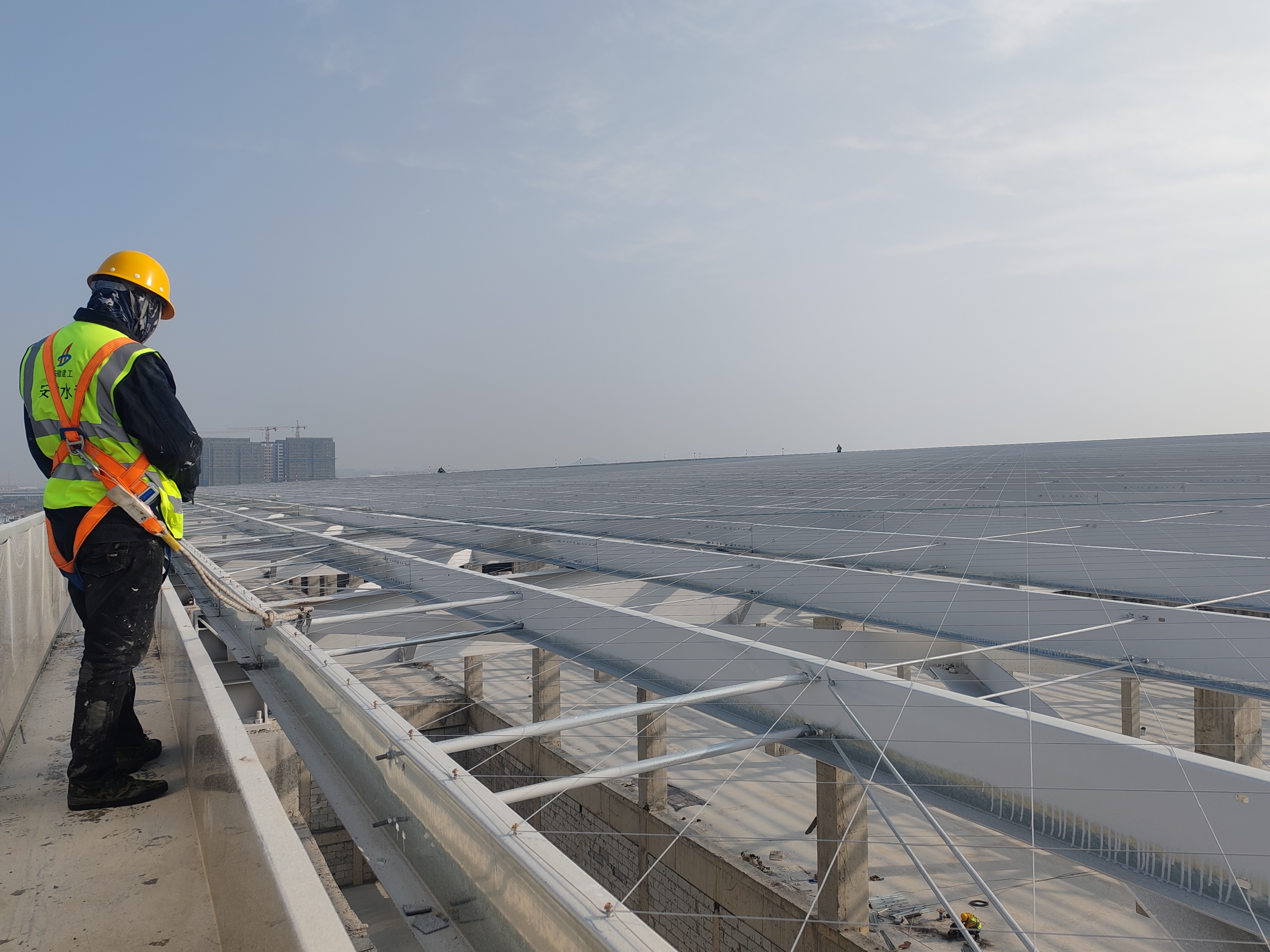 春節(jié)假期結(jié)束后,項目全力推進(jìn)復(fù)工復(fù)產(chǎn),搶抓晴好天氣,爭分奪秒追趕工期,馬不停蹄推進(jìn)項目進(jìn)度。復(fù)工伊始,項目團隊便憑借高效的執(zhí)行力和嚴(yán)謹(jǐn)?shù)墓ぷ鲬B(tài)度,有條不紊地完成了鋼結(jié)構(gòu)屋面鋼絲網(wǎng)格的拉設(shè)工作,為本次屋面板的鋪設(shè)筑牢了根基。