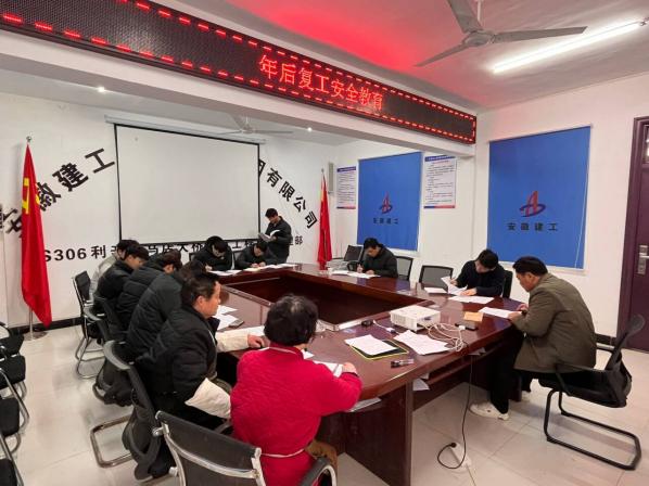 專題會議謀安全,嚴守安全底線。項目積極響應公司節后復工復產要求,強化統籌部署,開展復工復產安全工作部署會議,對關鍵崗位人員進行了重點培訓和考核,同時針對新進場及轉崗人員進行“三級安全教育”,持續夯實安全管理根基,筑牢安全生產防線。項目部建立項目復工任務臺賬,動態跟蹤復工人員到崗情況,調整班組分工,全力推進項目復工復產。