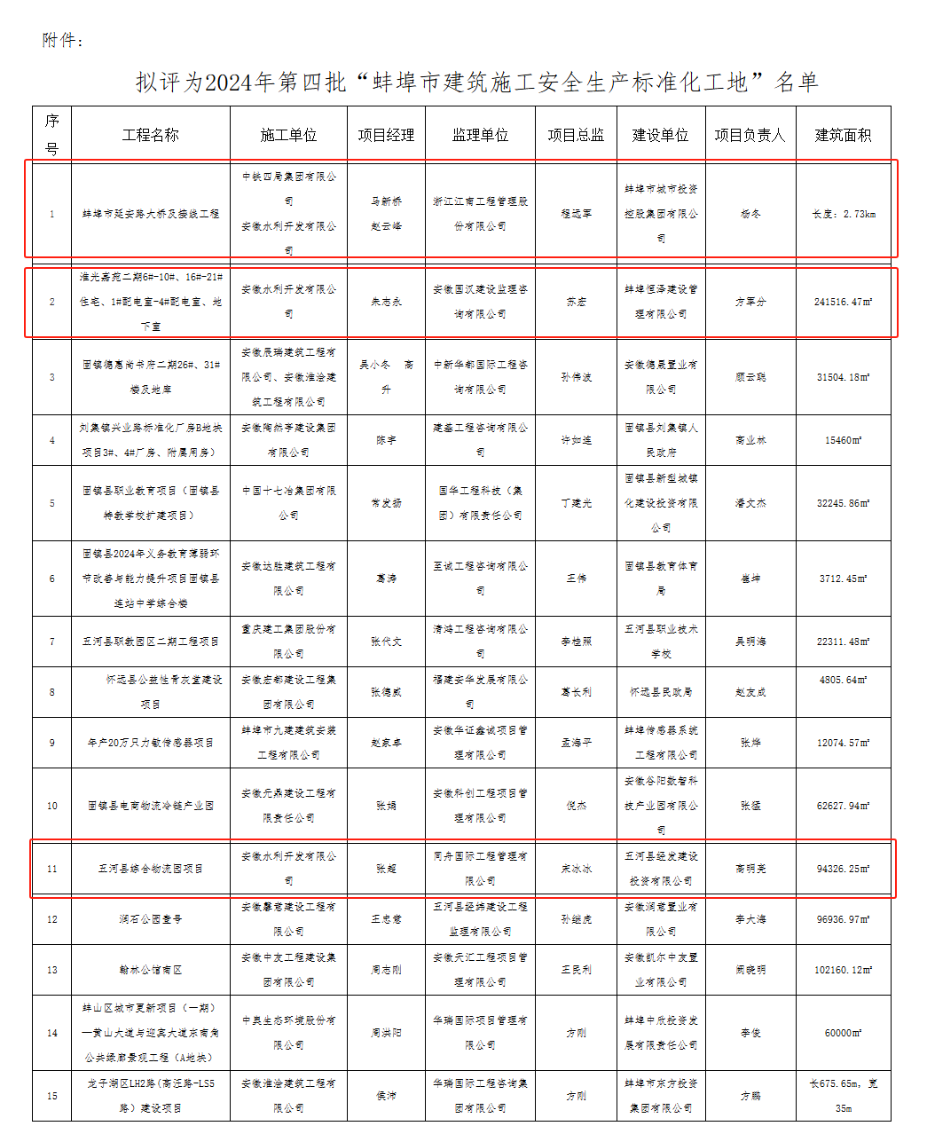 近日,建工水利承建的延安路大橋及接線工程、淮光嘉苑二期安置房項目、五河縣綜合物流園項目憑借高標(biāo)準(zhǔn)的安全管理體系與規(guī)范化施工,獲評“蚌埠市建筑施工安全生產(chǎn)標(biāo)準(zhǔn)化示范工地”榮譽稱號。