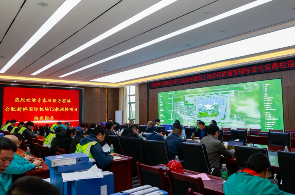 近日,中國建筑業協會委托安徽省建設工程質量與安全協會及專家到合肥新橋國際機場T2航站樓項目開展質量管理標準化競賽現場驗收。建工總承包副總經理王磊以及業主單位、監理單位、總包單位等相關負責人參加。