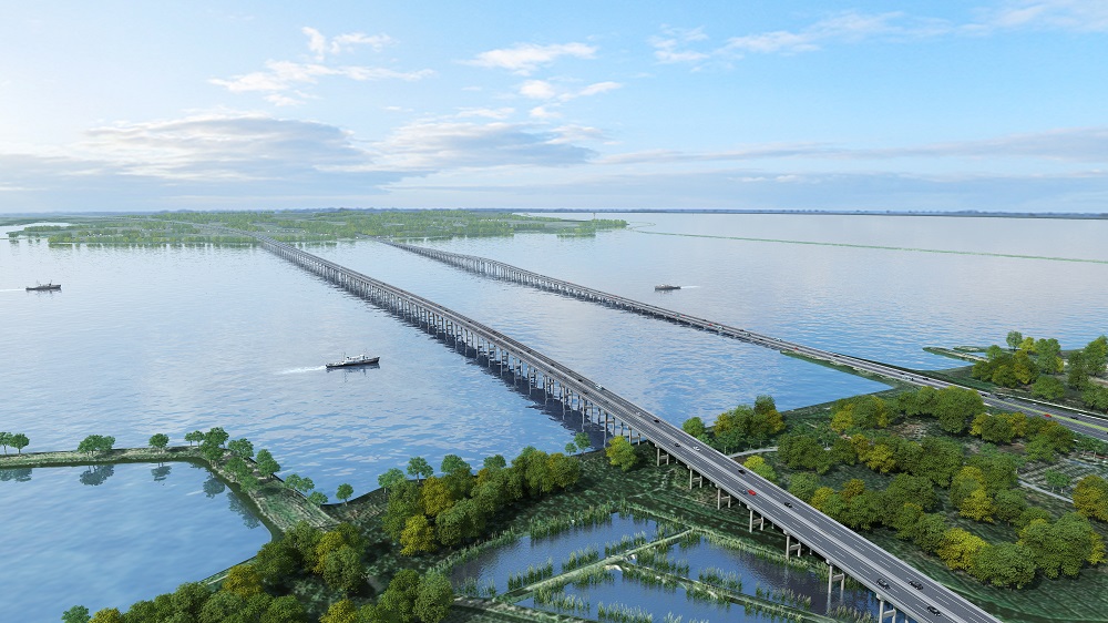 S20長豐至固始高速公路霍邱至皖豫界段路線起點位于霍邱縣潘集鎮,全長56.692km,按照雙向四車道高速公路標準建設,設計速度120公里/小時。建工建投集團承建項目路基路面02標,包含路基、路面、橋涵、通道和防排設施安裝施工等內容。路基段起點樁號K19+166,終點樁號K32+300,全長13.14km,其中路基長2.43km,橋梁總長10.7km,包含特大橋1座,大橋2座,中橋2座。路面段起點樁號K0+000,終點樁號K32+300,全長32.3km。