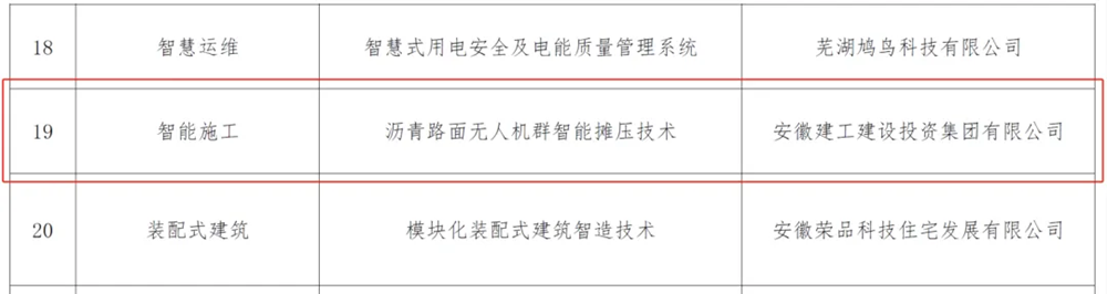 建工建投集團憑借“環保型電磁瀝青智能加熱設備”和“瀝青路面無人機群智能攤壓技術”兩項智能化成果成功入選新技術新產品名單,同時“宣城至涇縣高速公路一期XJ-01標項目”和“淮北西站綜合開發項目”入選試點項目名單,充分彰顯了公司在智能建造與建筑工業化協同發展領域的硬核實力與前瞻布局。