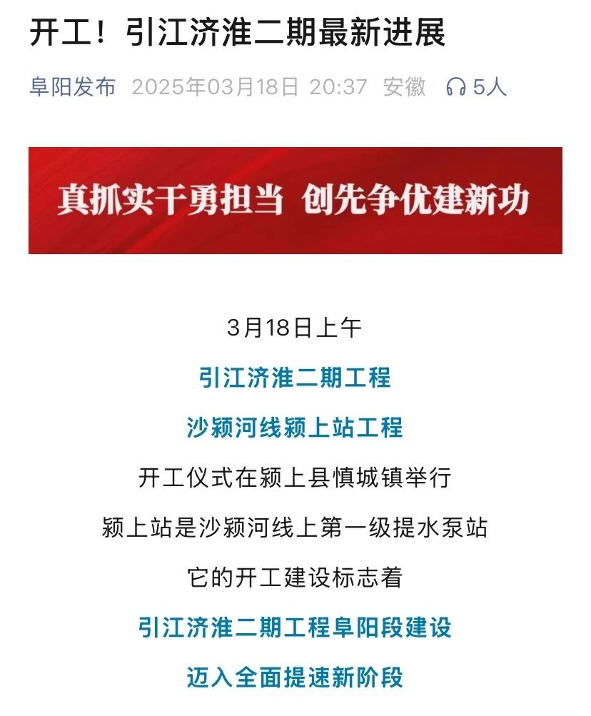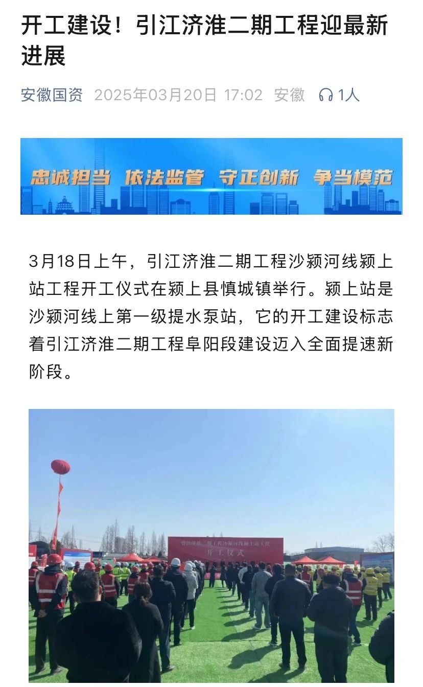 3月18日,建工水利承建的引江濟淮二期工程(水利部分)沙潁河線潁上站工程開工儀式正式舉行,受到中國水利報、安徽日報、安徽國資、中安在線、阜陽日報、阜陽電視臺等主流媒體關(guān)注報道。