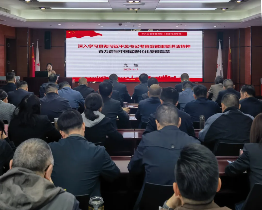 隨后,光婭教授以《深入學習貫徹習近平總書記考察安徽重要講話精神 奮力譜寫中國式現(xiàn)代化安徽篇章》為題,系統(tǒng)梳理了黨的十八大以來習近平總書記關(guān)于安徽工作的重要講話指示批示精神,從勇?lián)哔|(zhì)量發(fā)展新使命、把握高質(zhì)量發(fā)展新形勢、繪就高質(zhì)量發(fā)展新藍圖、開啟高質(zhì)量發(fā)展新征程四個方面進行深入解讀,內(nèi)容詳實、邏輯嚴密、事例鮮活,對與會人員學習貫徹習近平總書記考察安徽重要講話精神具有很強的啟發(fā)和指導意義。