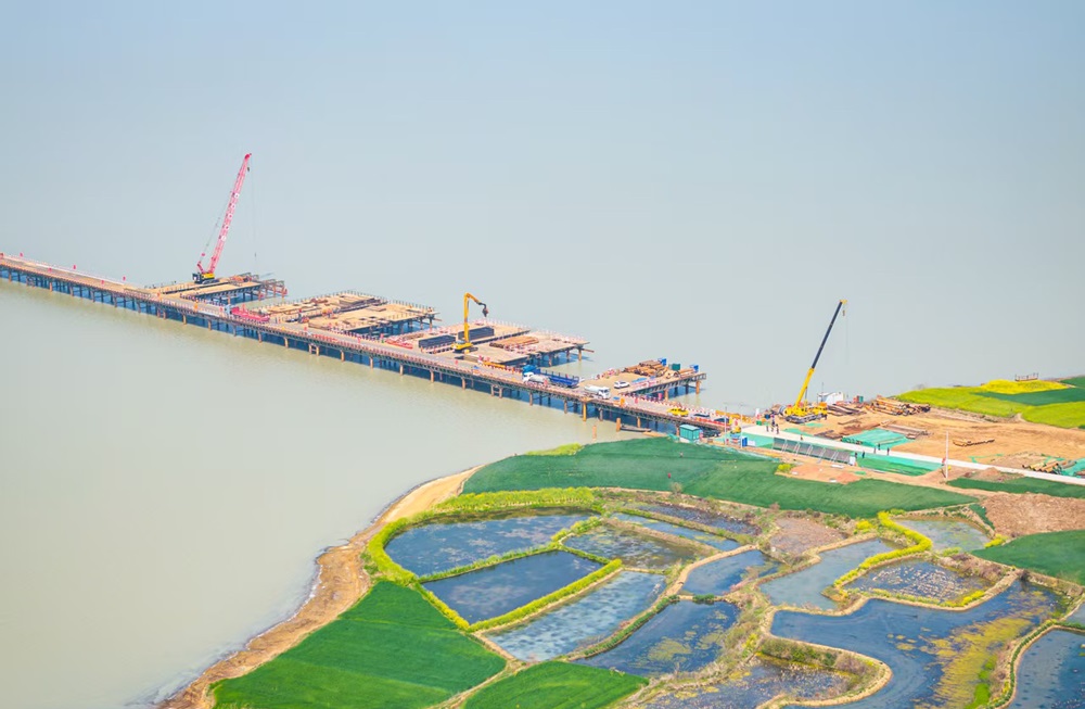項目已于2024年12月10日獲得先行用地批復,目前項目6處先行開工點已全面開工。城東湖、城西湖特大橋鋼便橋(3.5km、2.5km)分別于4月2日、4月8日全線合龍貫通,完成樁基374根,地系梁2道,路基清表、圓管涵及箱涵預制有序推進。