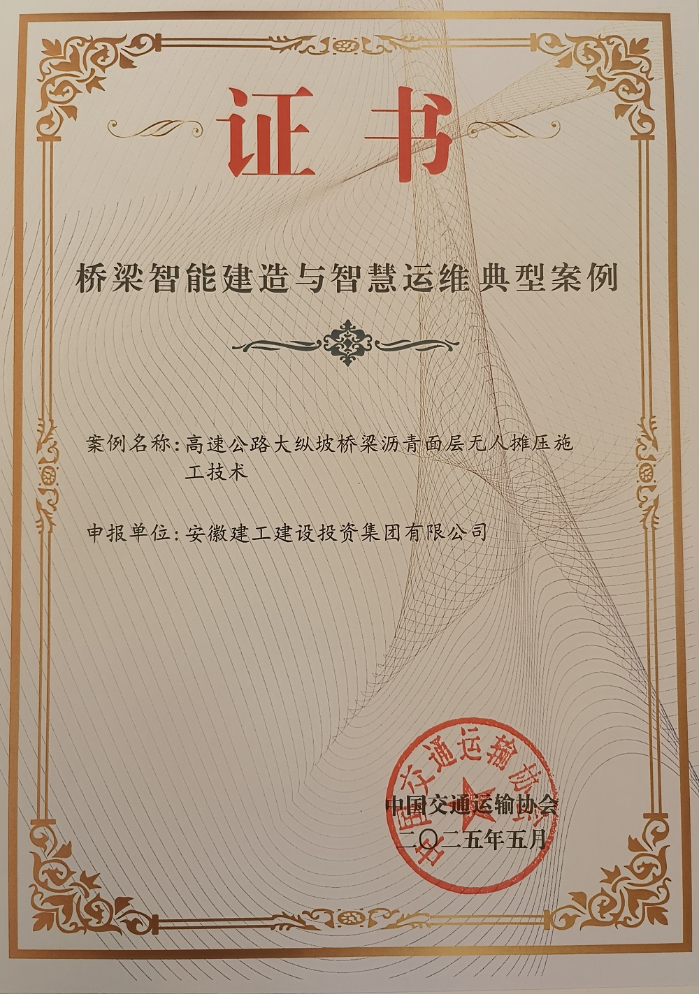 近期,中國交通運輸協會新技術促進分會發布了關于“橋梁工程智能綠色建造與智慧運維”典型案例、優秀案例推薦名單。建工建投集團所申報的“高速公路大縱坡橋梁瀝青面層無人攤壓施工技術”獲典型案例,“BIM +智慧工地管理系統在橋梁施工中的應用”獲優秀案例。