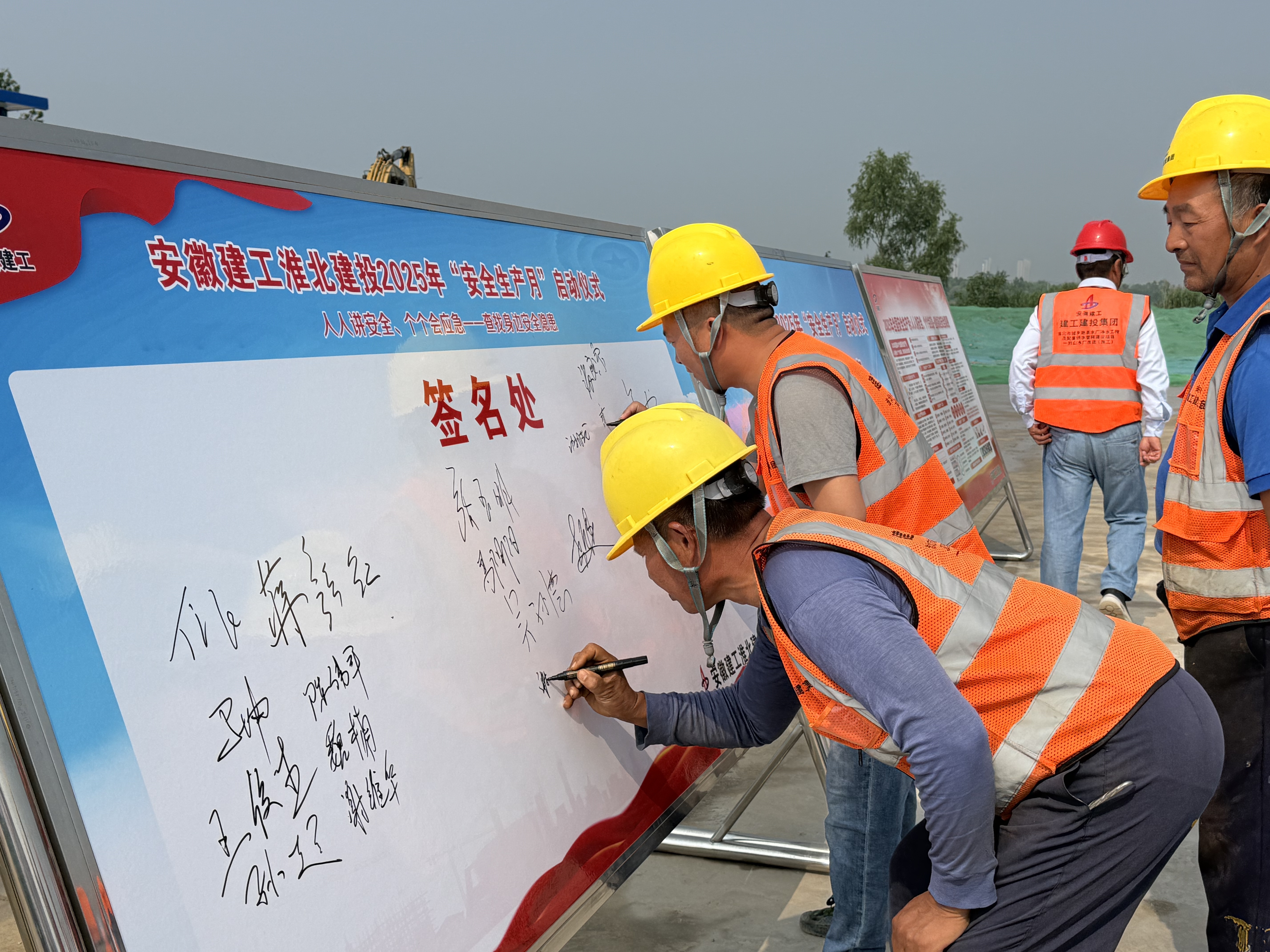 6月3日上午,安徽建工淮北建投2025年“安全生產月”活動啟動儀式暨現場觀摩會在淮北市烈山水廠項目現場舉行。安徽建工淮北建投黨委書記、董事長、總經理張玉明宣布活動正式啟動,并作動員部署講話,公司黨委委員、副總經理朱成亮帶領全體人員進行安全宣誓。公司領導班子、機關員工、業主和監理單位、勞務隊伍、項目經理等50余人參加儀式。