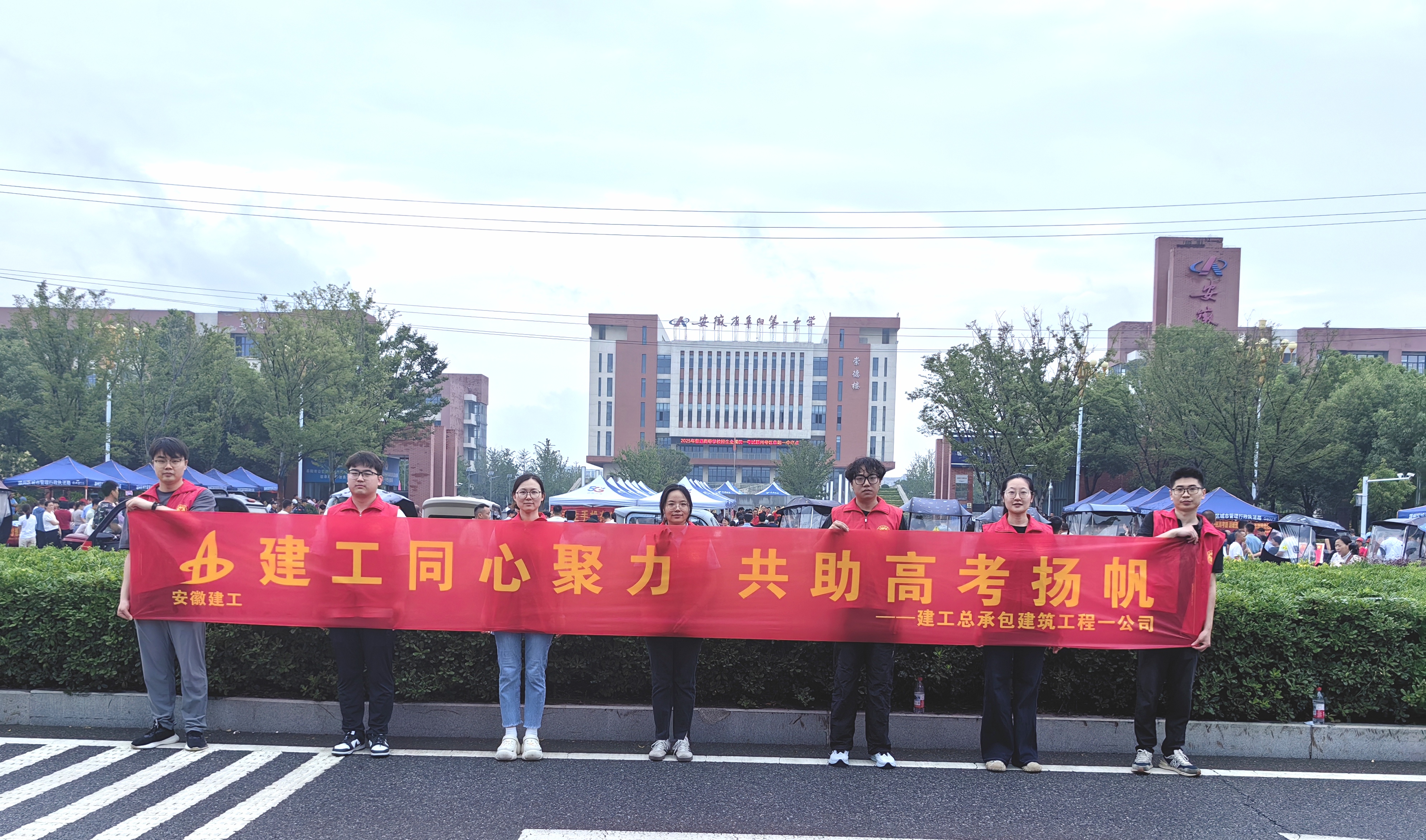 6月7日高考日,建工總承包所屬團支部主動踐行國企擔當,在阜陽市第一中學考點組織青年志愿者開展愛心助考服務。 志愿者們熱情為考生及家長發放礦泉水、指引考場、答疑解惑、維持秩序,以暖心行動為學子逐夢護航,傳遞國企溫度與力量。