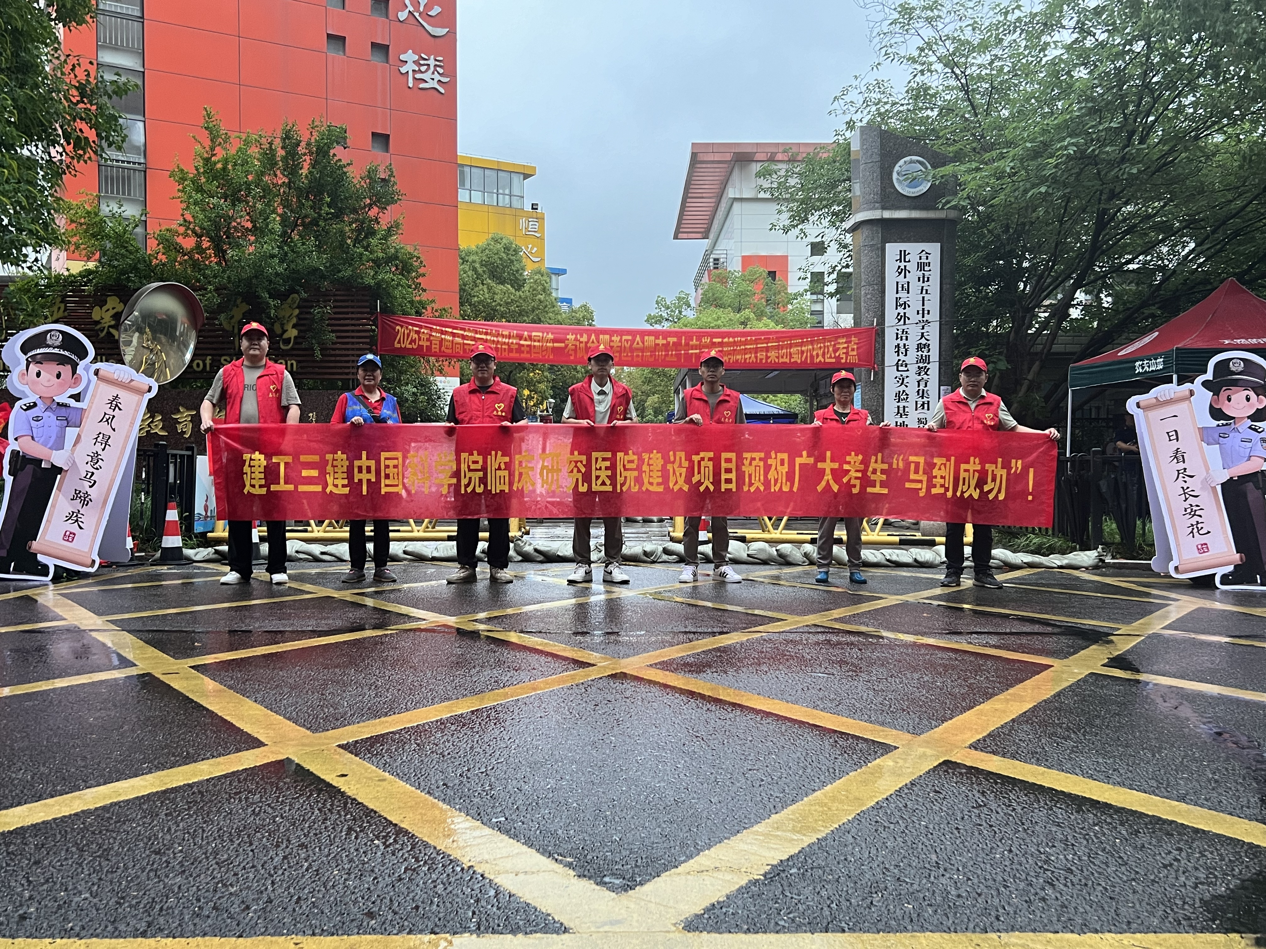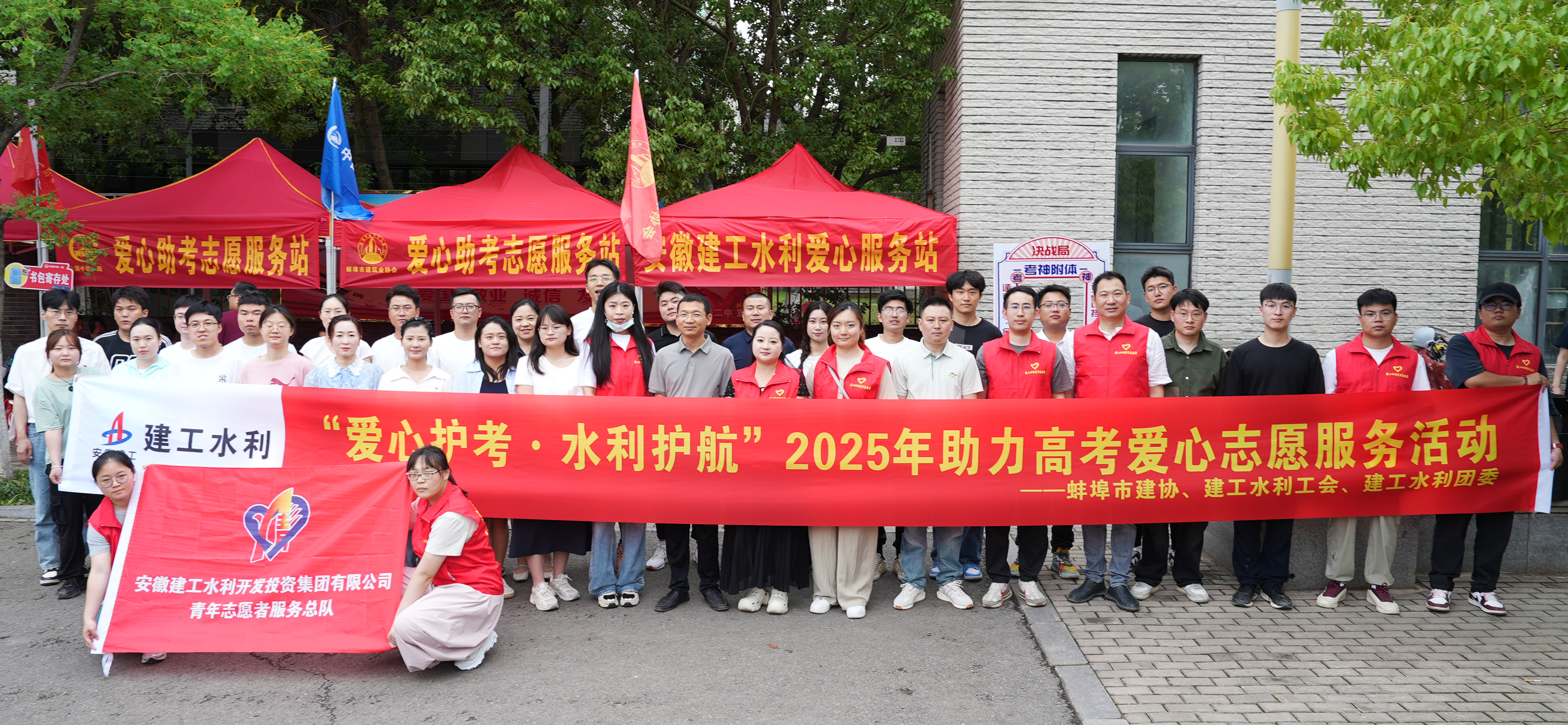 6月7日,2025年全國高考正式啟幕。建工建投公司迅速行動,組織所屬各項目成立愛心志愿者服務隊,在合肥市通用技術學校、霍邱縣一中、望江縣二中等多個考點外搭建起“暖心助考服務站”。志愿者們精心準備了礦泉水、應急文具、防暑藥品等物資,為考生、家長及一線執勤干警送去貼心服務,用真情實意詮釋國企社會責任,以實際行動為莘莘學子圓夢護航。