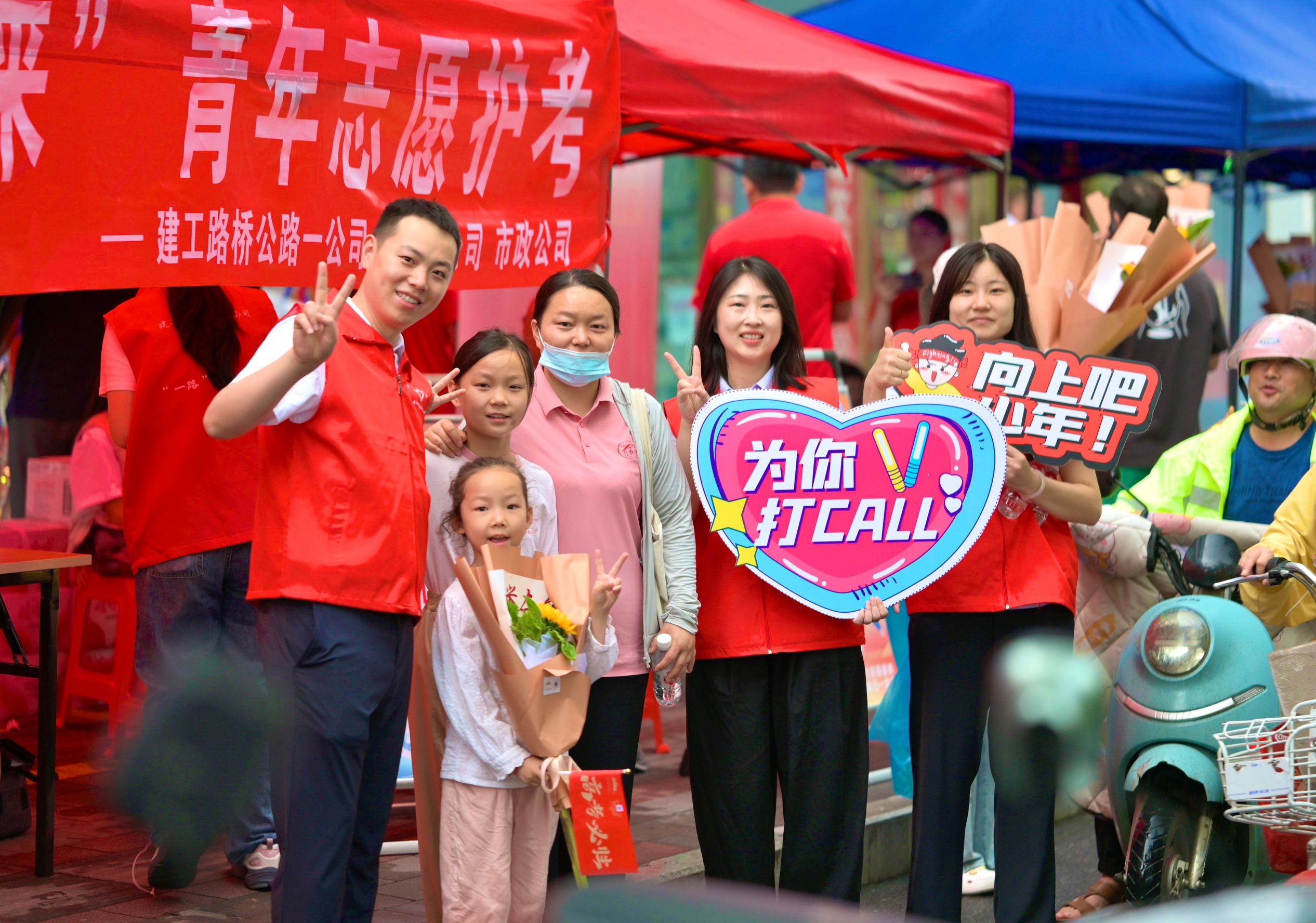 6月7日清晨,高考大幕初啟,建工路橋公司志愿者早早在考點外準備就緒,為奔赴考場的莘莘學子護航。志愿者們紛紛化身“護考員”,為學子及家長準備好礦泉水、防暑貼,支起了帳篷供家長歇腳,做好迎考保障,在考前給考生加油打氣,緩解考前壓力,鼓舞信心,并備好了文具,為考生提供及時的“支援”。