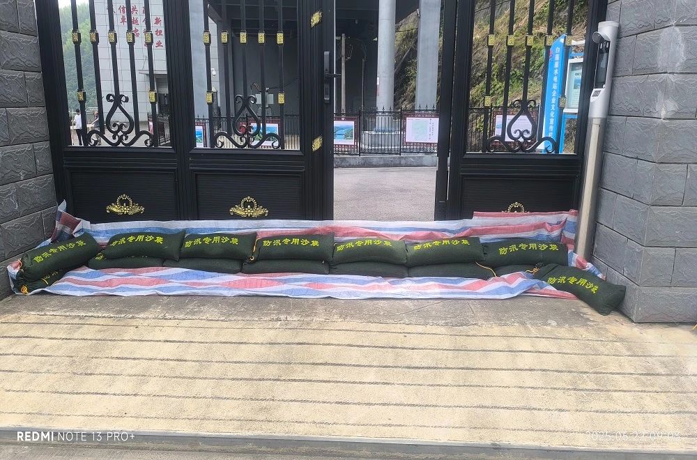 面對東淠河流域普降大到暴雨、電站庫水位急速攀升的緊急情況,白蓮崖電站迅速拉響防汛警報、啟動應急響應機制——第一時間向省調申請加大發電負荷,搶排庫容;領導班子靠前指揮,嚴格執行 24 小時帶班值守制度;搶險隊伍迅速集結,以防汛沙袋嚴密封堵廠房大門,在主要道路口設立醒目警示標志,實施全時段巡查管控。全體人員嚴陣以待,用行動筑牢安全防線,全力守護人員安全與機電設備平穩運行。