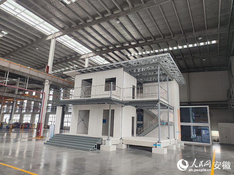 在裝配式臨建房屋車間,一棟鋼結構小樓格外顯眼。這是安徽建工集團智能綠色制造有限公司按照汽車工業化生產方式制作而成的裝配式建筑。