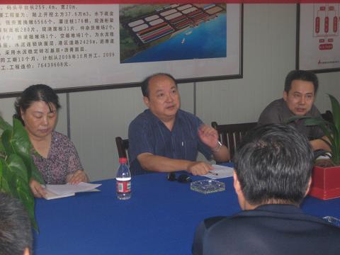 路港公司總經理許琪向夏主席一行表示熱烈歡迎,并介紹了路港公司的生產經營及改革發展情況。隨后,合肥港項目部經理陸林就該工程工期、造價、施工進度等有關情況及項目上在勞動保護方面采取的具體措施和成效作了詳細匯報。