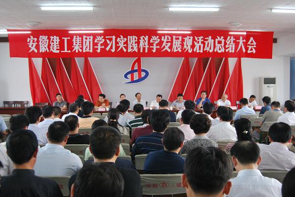 集團公司黨委書記、學習實踐活動領導小組組長張海平作學習實踐活動總結講話。講話全面回顧總結了學習實踐活動開展情況,他指出,經過半年時間的集中學習實踐活動,圓滿完成了學習調研、分析檢查、整改落實三個階段的各項工作任務。在學習實踐活動中形成了五點共識:一是要注重理解和把握科學發展觀的世界觀和方法論意義,提高分析問題和解決問題的能力。二是要抓住發展不放松,立足當前,著眼長遠,把學習實踐活動中取得的思想成果、實踐成果轉化為推動安徽建工科學發展的強大動力。三是要堅持以人為本,實現好、維護好、發展好職工的根本利益。四是要按照全面協調可持續這一基本要求,打造企業的可持續發展能力和核心競爭力,不斷提高企業的經濟效益和社會效益。五是實踐科學發展觀,要堅持統籌兼顧這一根本方法,抓好點上與面上、上游與下游、主業與輔業、自營與聯營、國內與國外、近期與長遠、物質文明與精神文明、政治文明等方方面面工作,努力實現安徽建工平穩較快和諧發展。通過學習實踐活動,取得了明顯成效,一是增強了貫徹落實科學發展觀的堅定性和自覺性;二是找出了影響和制約企業科學發展的突出問題;三是進一步明確了企業科學發展的思路和目標;四是初步解決了影響和制約科學發展的突出問題和職工關心的現實問題。經測評,集團公司學習實踐活動群眾滿意度達99.2%;所屬各單位學習實踐活動群眾滿意度均在95%以上。為進一步鞏固和擴大學習實踐活動成果,張書記強調指出,一要持續抓好整改方案的落實;二要建立完善學習實踐科學發展觀長效機制;三要繼續創新有利于科學發展的體制和制度;四要繼續加強黨建、領導班子建設和隊伍建設。
