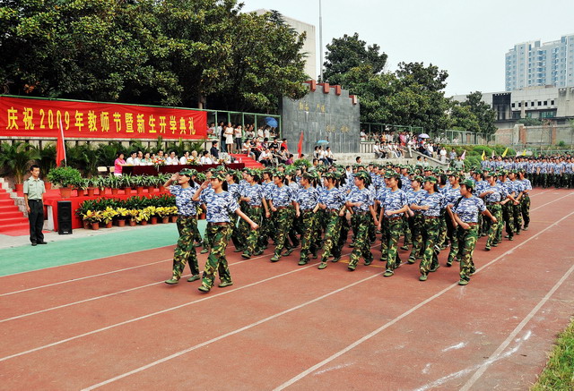王禮義院長首先檢閱了09級新生軍訓方陣。隨后,09級新生進行了軍訓隊列、分列、整理內務、軍體拳和韻律操等匯報表演。參訓學生的精彩表演博得了廣大師生員工的陣陣掌聲。