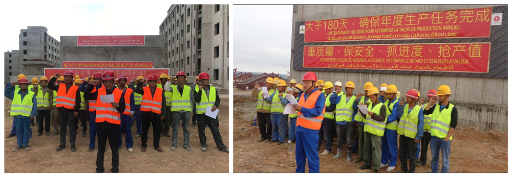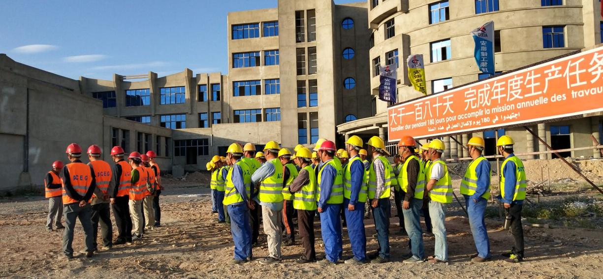 ACEG (Algeria) Branch has announced an activity of Production Safety Month with the theme “Life the Highest, Safety in Production” early this month at the mid-year time of the year when everything for the construction production is in full swing and safety in production shall be highlighted, staff of each project department or team subordinate to the Branch held their launch ceremonies separately at their worksites for all safety mobilization and the entire personnel read the safety oath.
