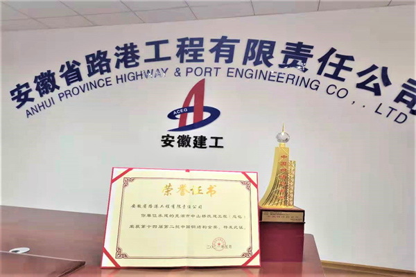 On May 29, the commendation conference for Gold Award of China’s Construction Engineering Steel Structure was successfully held in Wuhan, the capital city of Central China’s Hubei province, where the rehabilitation construction project of Zhongshan Bridge contracted and built by Anhui Provincial Highway & Port Engineering Company Limited – one of the subsidiaries of ACEG, was awarded the second batch of the 14th Gold Award of China’s Construction Engineering Steel Structure and the honor - Project manager award for outstanding contribution was conferred on the Project manager.