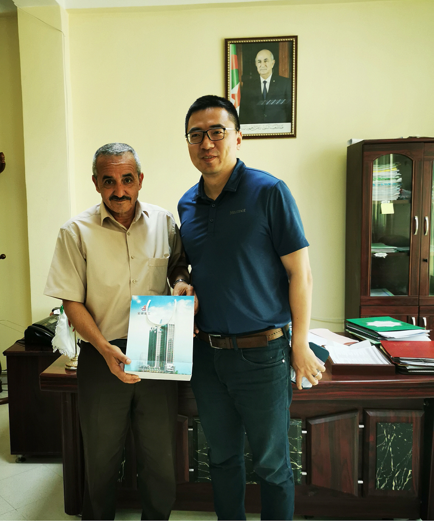 Later, Bian called on Mr. Hawali Belghiri, Director General of the Public Utilities Bureau of Tebessa province, the Bureau is the owner of the Project - Tebessa University Town, and the two sides have discussed the details of the handover of Taibessa University Town and related issues. Mr. Hawali Belghiri lavishes praise on the quality and progress of the construction of Tebessa University Town by ACEG and gives thumbs-up for ACEG as a construction enterprise with great abilities and he has also expressed the intention to cooperate with ACEG in the future.