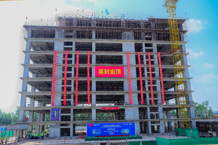 On the afternoon of August 13, local time, Anhui Construction Engineering Group (Pakistan) Branch held the topping-out ceremony for the completion of the main structures of the Gezhouba Group’s Pakistan Regional Dispatch Center Building Project in Islamabad, the capital of Pakistan.